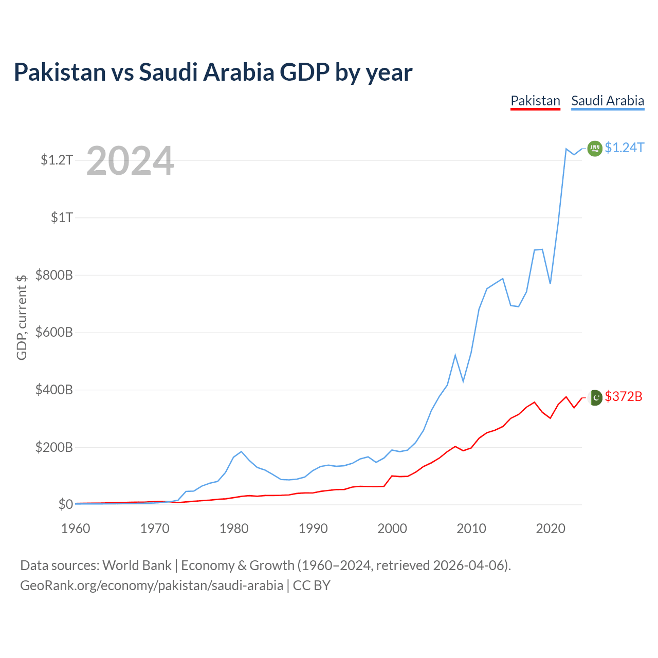 Pakistan vs Saudi Arabia GDP by year