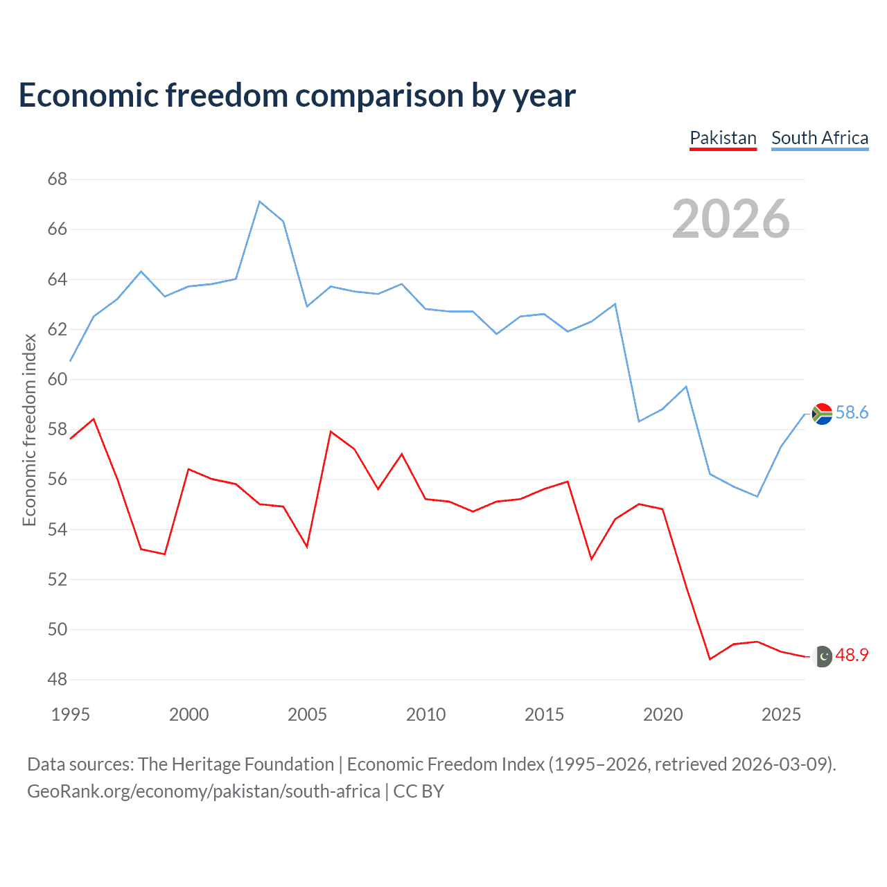 Data sources: The Heritage Foundation | Economic Freedom Index (1995–2026, retrieved 2026-03-09).