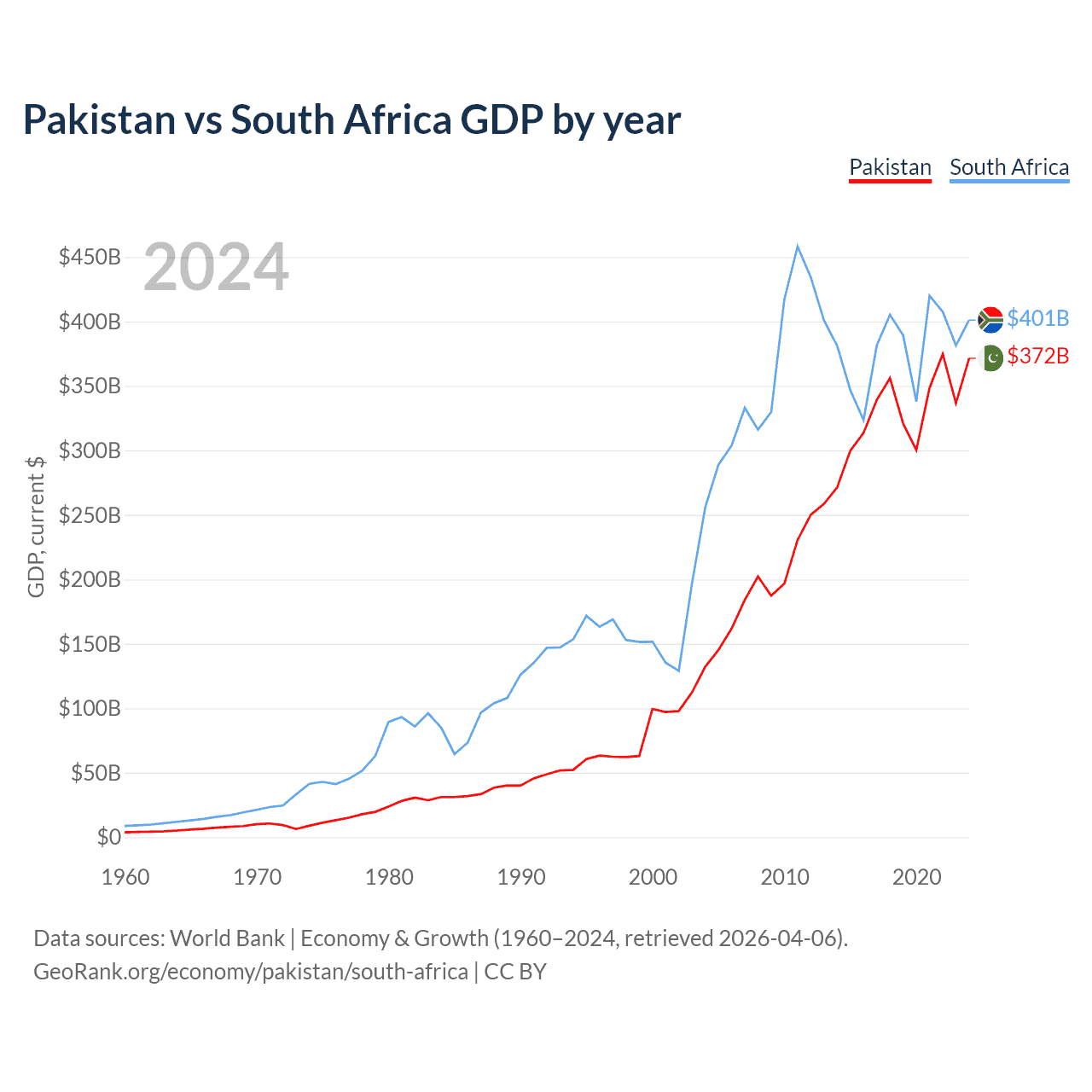 Pakistan vs South Africa GDP by year