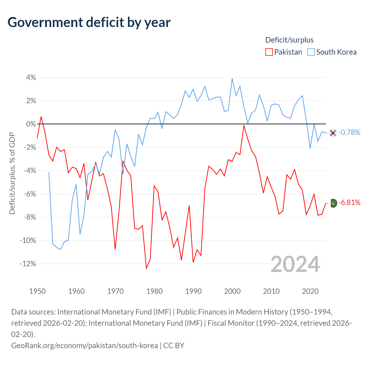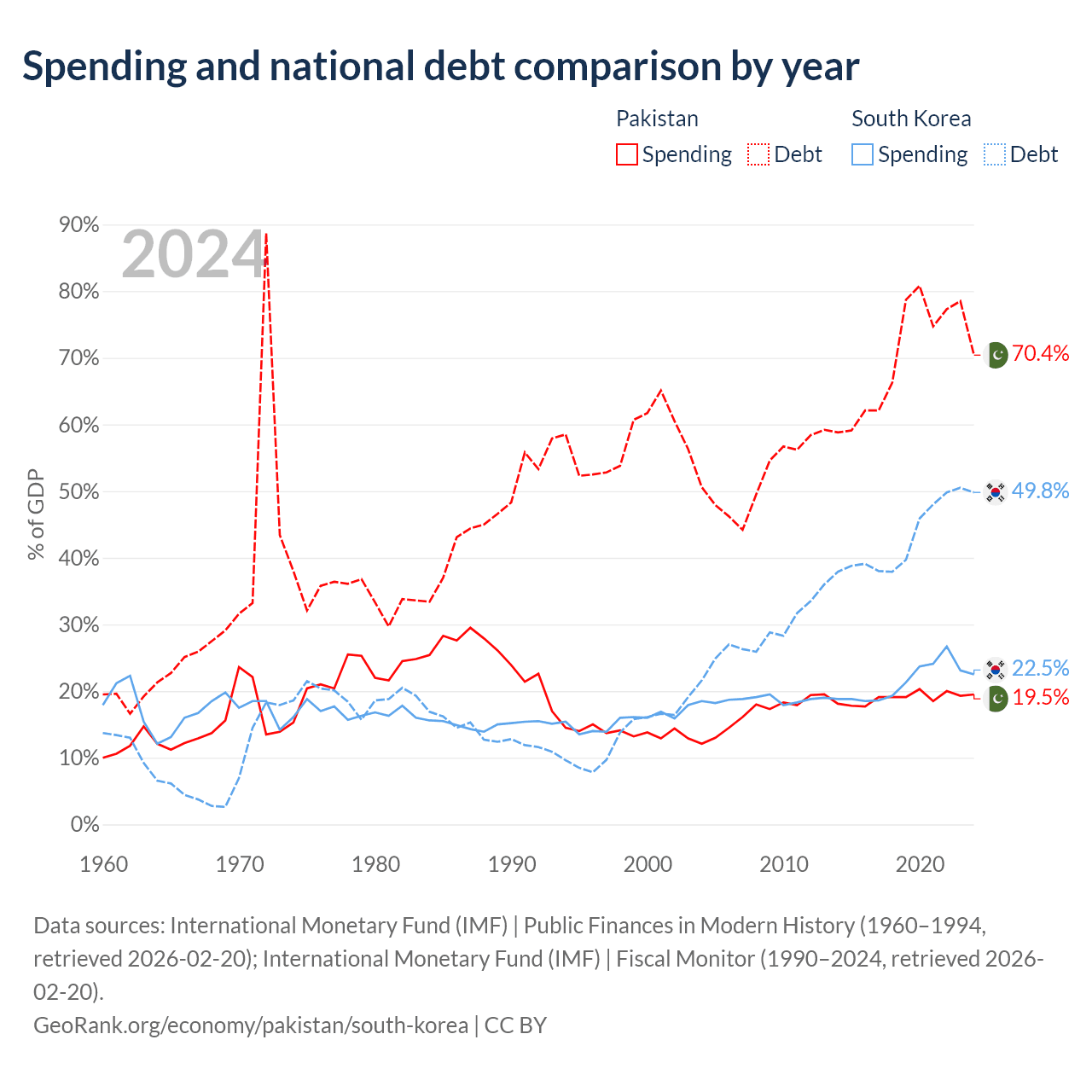 Pakistan has $262B in government debt (70.4% of GDP), compared to $934B (49.8% of GDP) in South Korea.