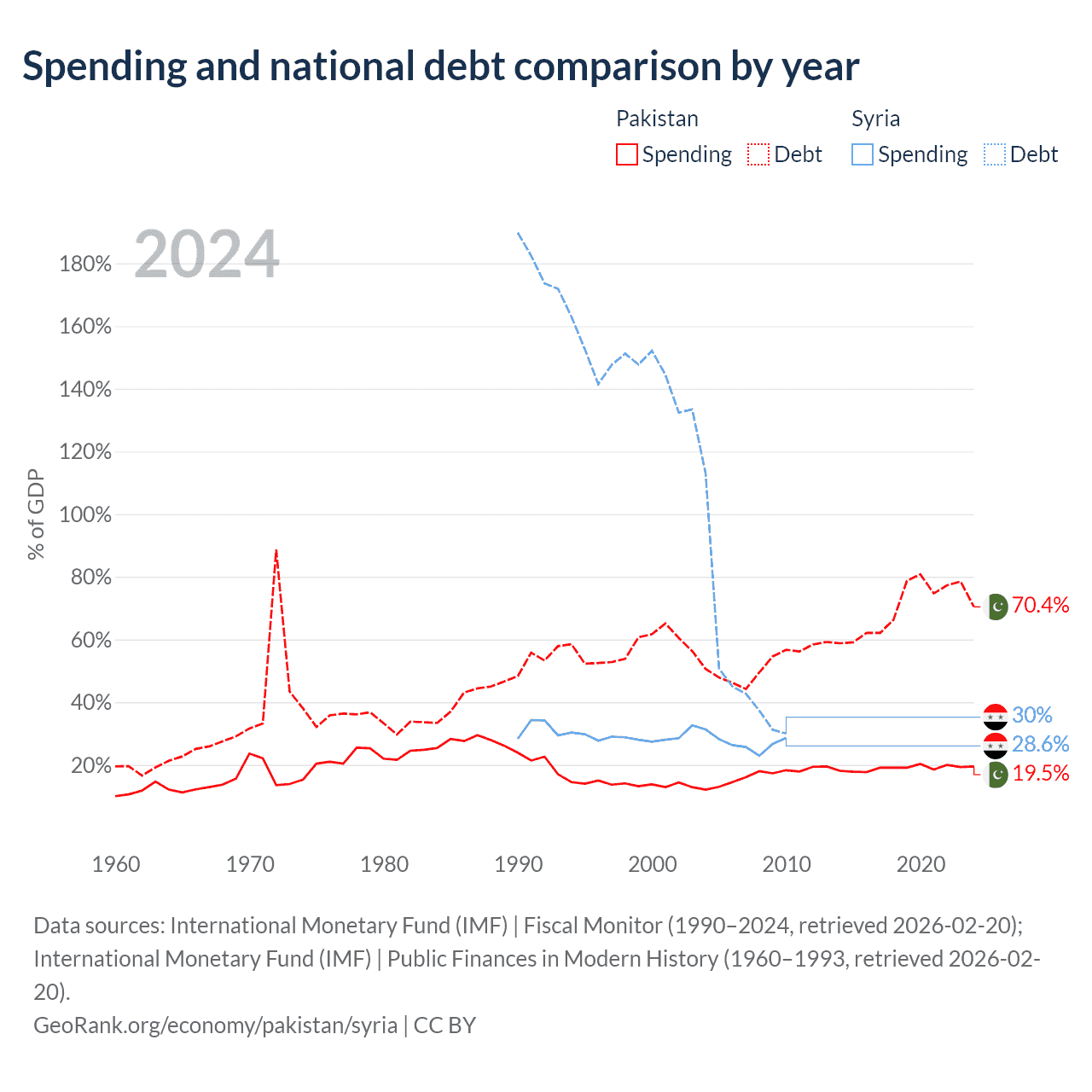Pakistan has $262B in government debt (70.4% of GDP), compared to $18.4B (30% of GDP) in Syria.