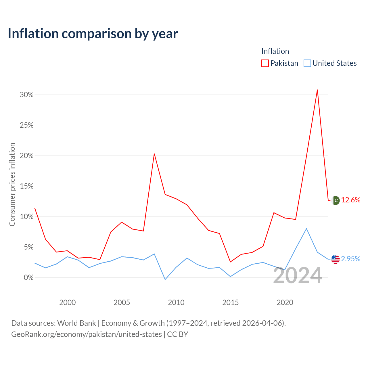 Data sources: World Bank | Economy & Growth (1960–2024, retrieved 2026-04-06).