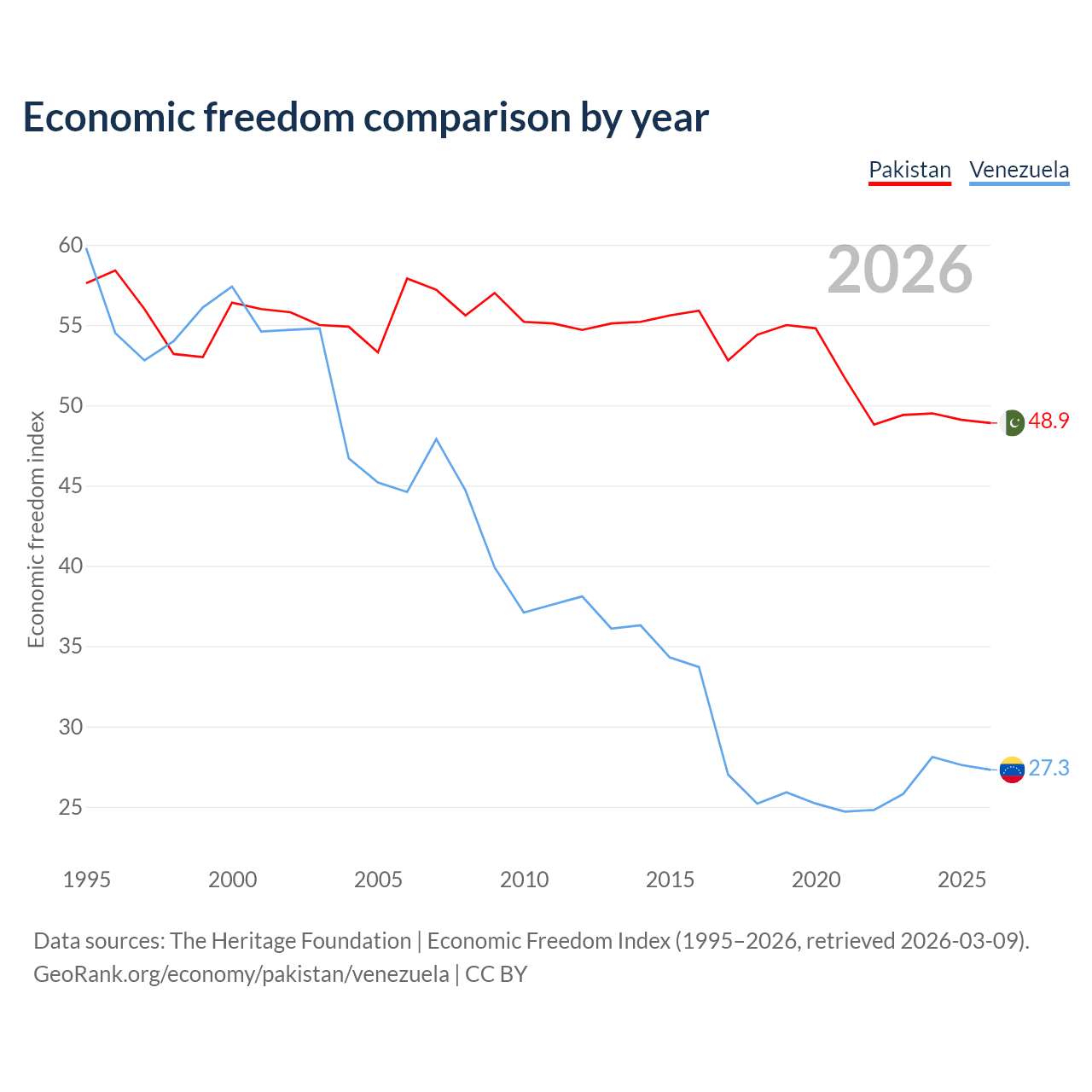 Data sources: The Heritage Foundation | Economic Freedom Index (1995–2026, retrieved 2026-03-09).