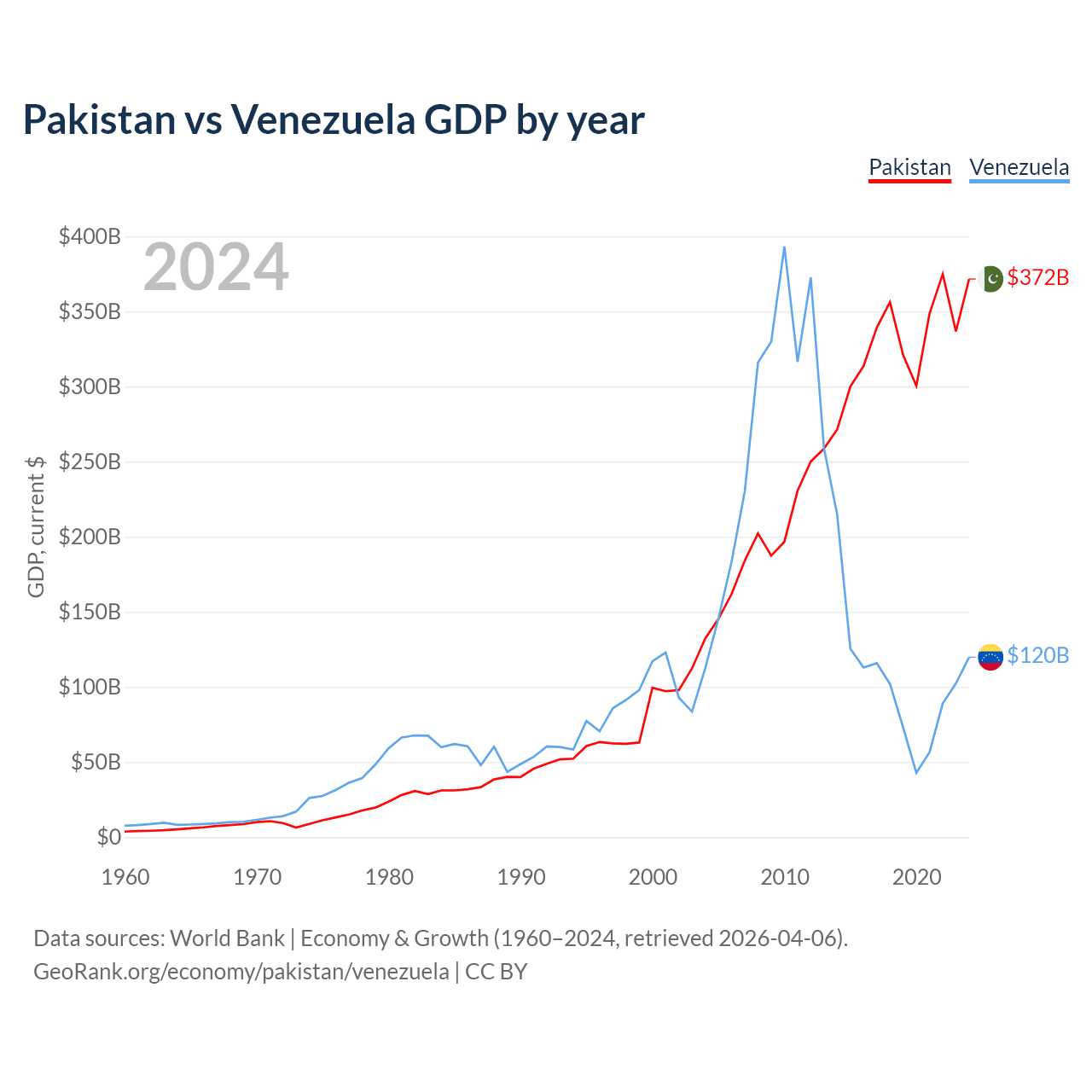 Pakistan vs Venezuela GDP by year