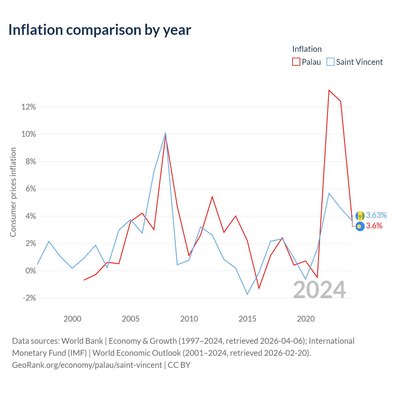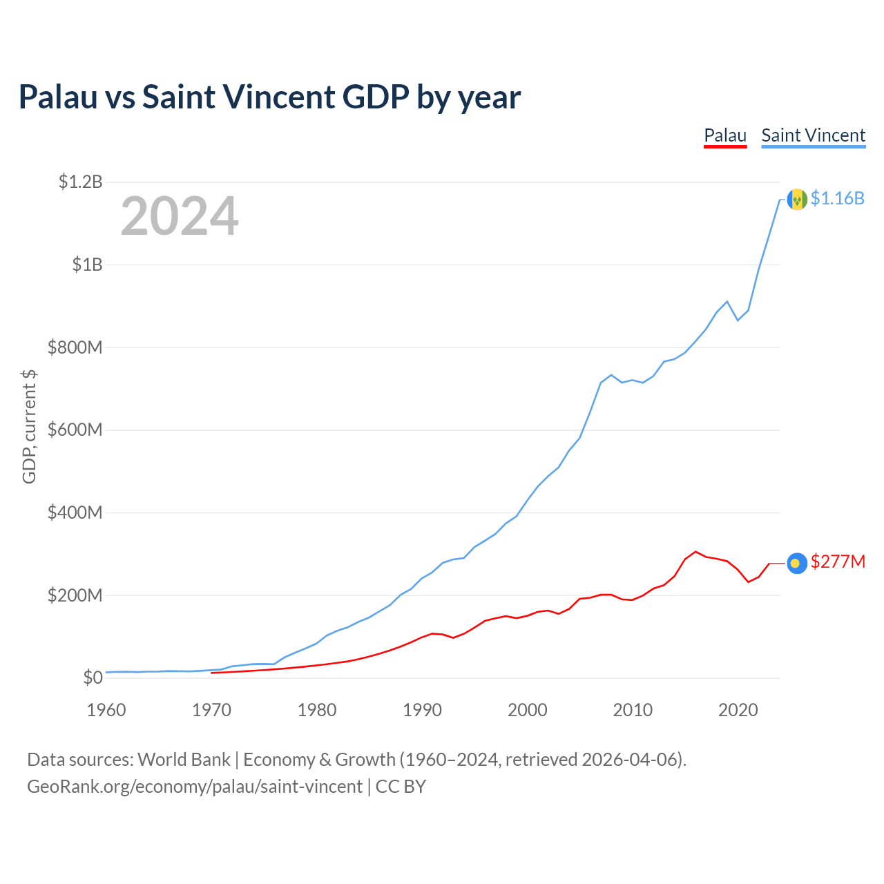 Palau vs Saint Vincent GDP by year