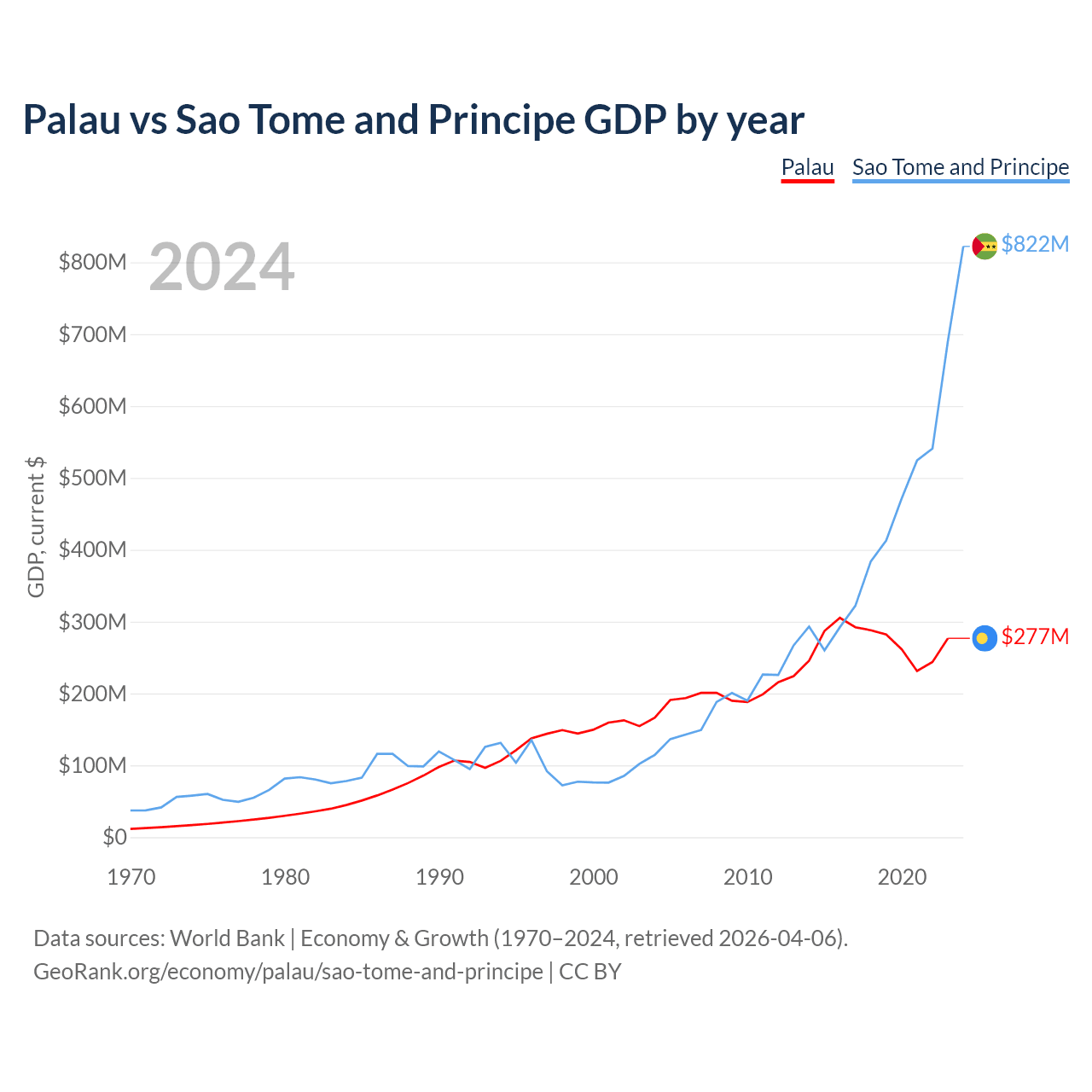 Palau vs Sao Tome and Principe GDP by year