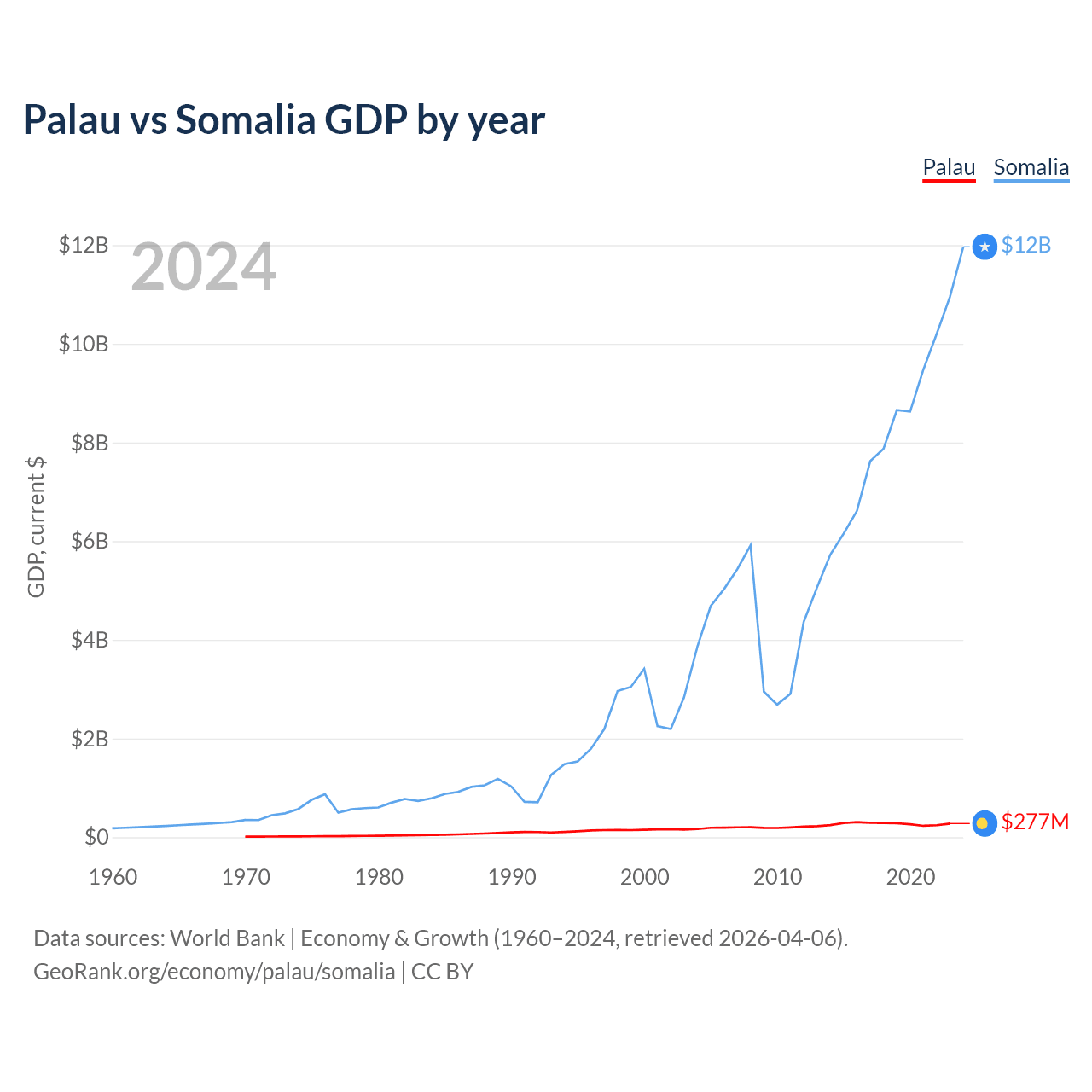 Palau vs Somalia GDP by year