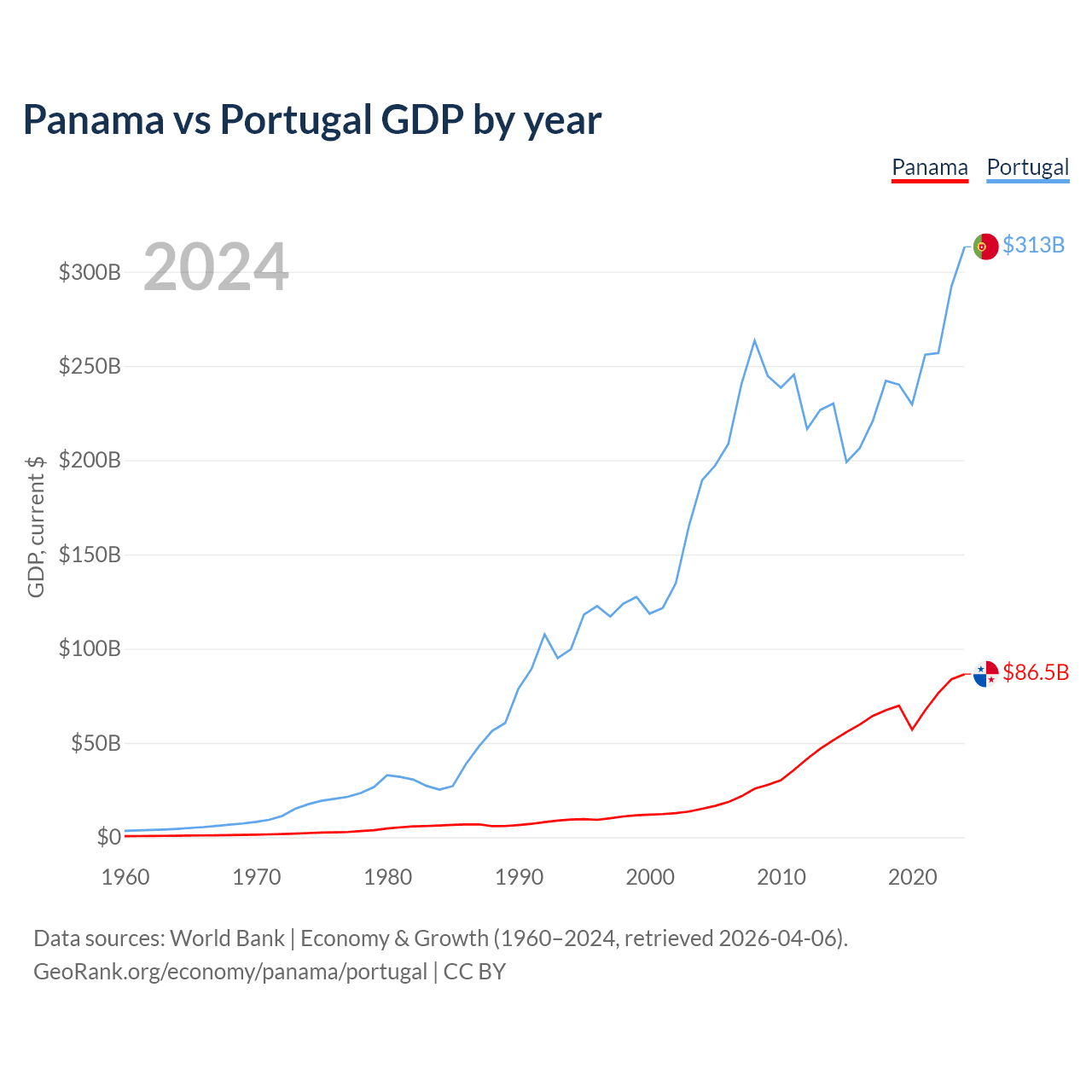 Panama vs Portugal GDP by year