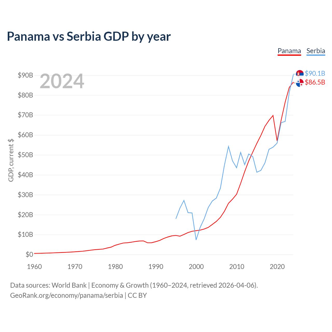 Panama vs Serbia GDP by year