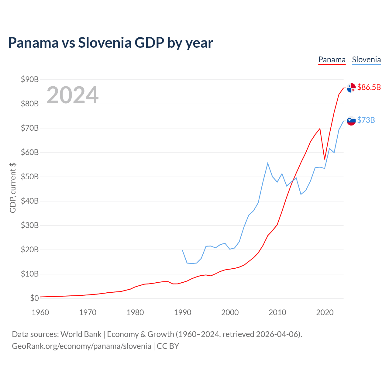 Panama vs Slovenia GDP by year