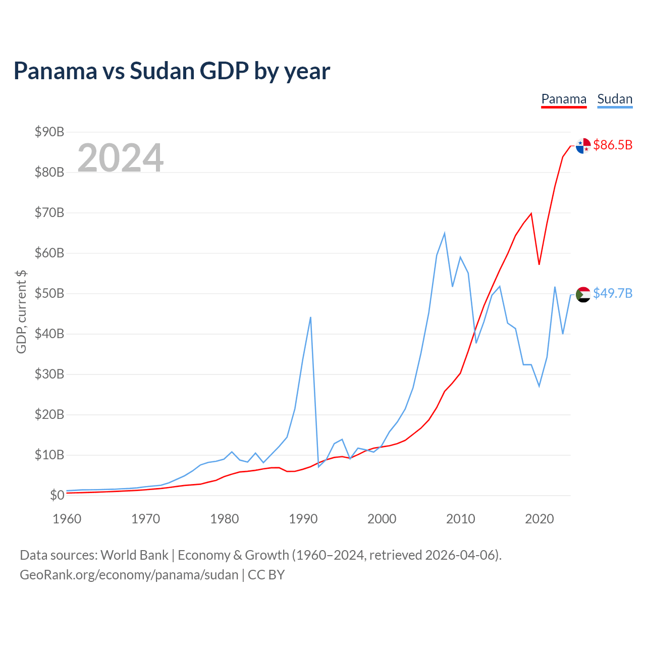 Panama vs Sudan GDP by year