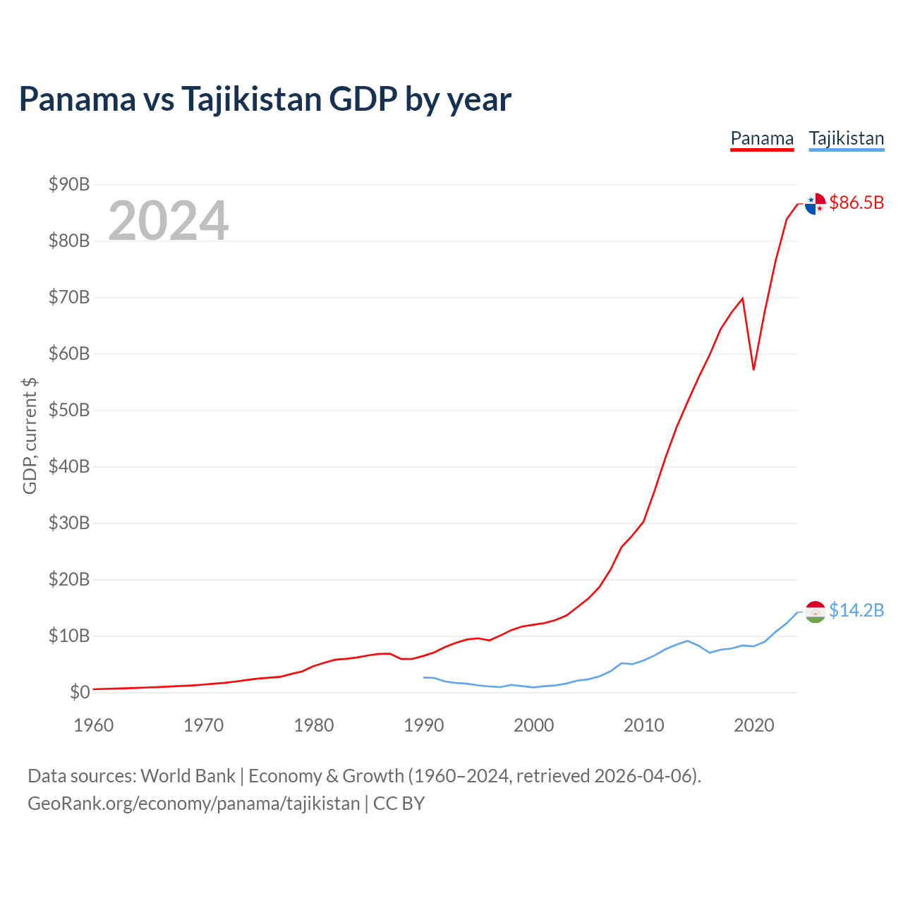 Data sources: World Bank | Economy & Growth (1960–2024, retrieved 2026-04-06).