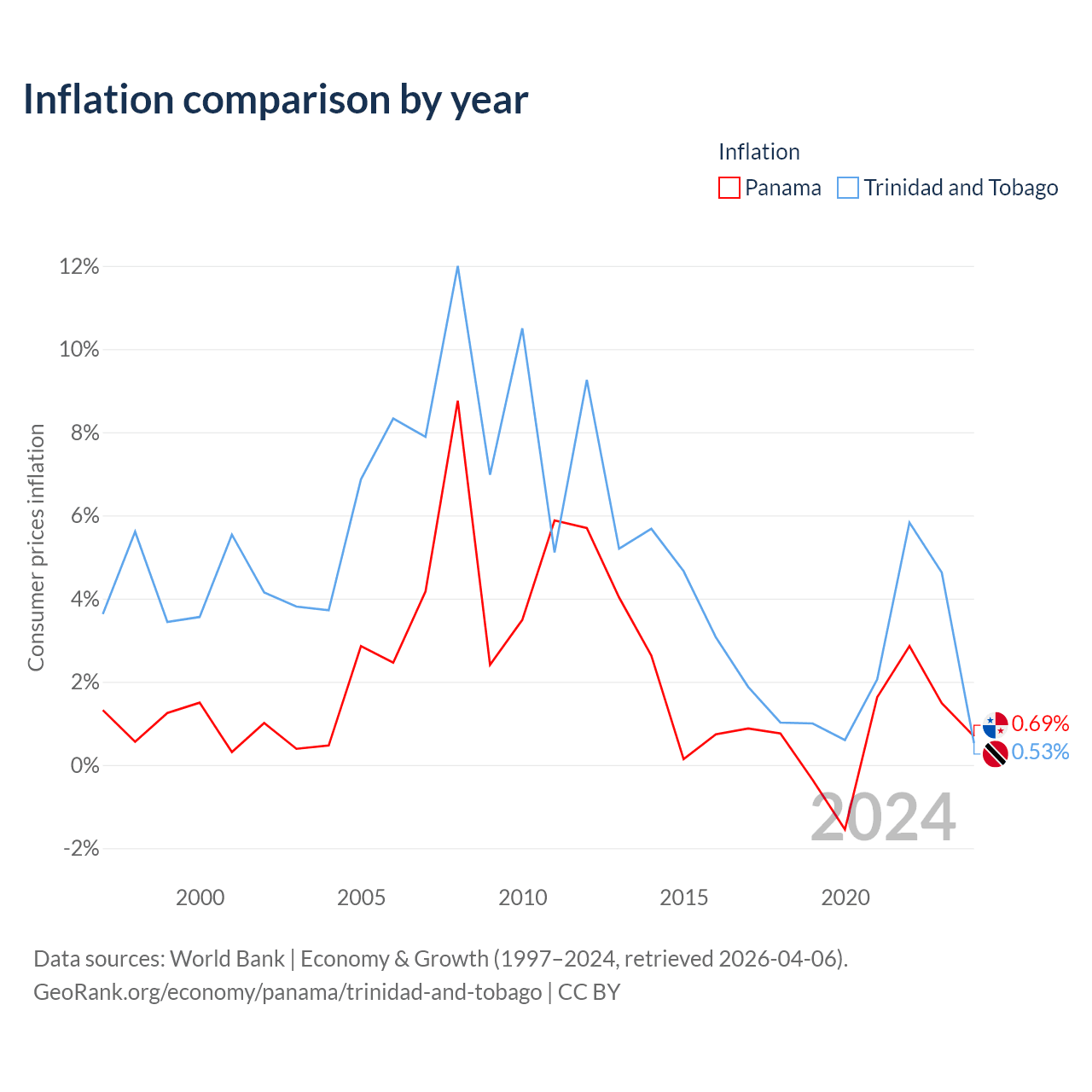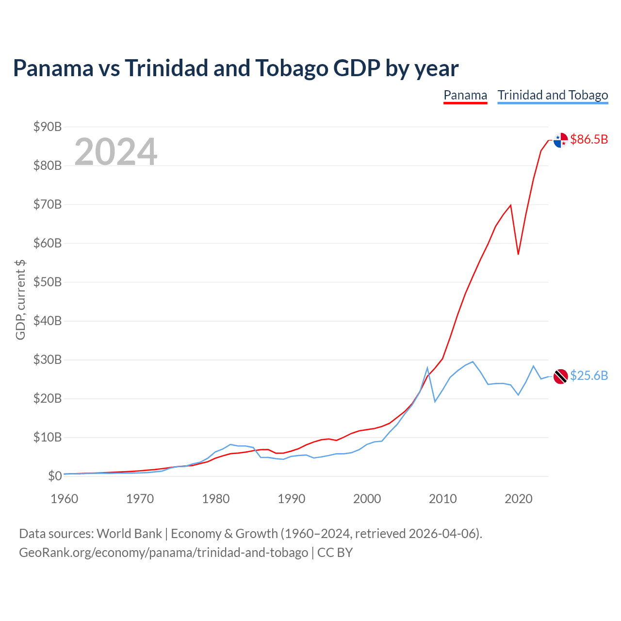 Data sources: World Bank | Economy & Growth (1960–2024, retrieved 2026-04-06).