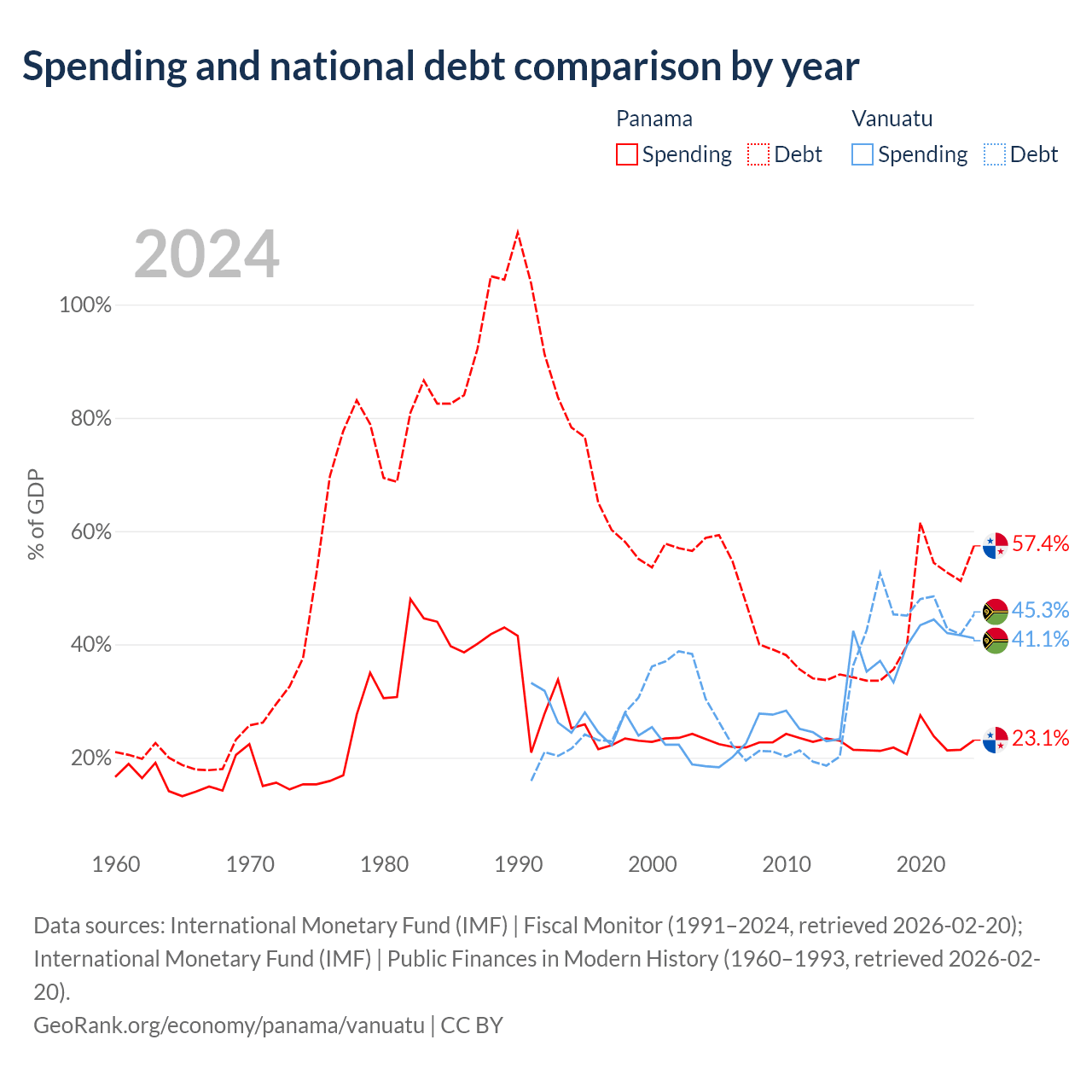 Panama has $49.6B in government debt (57.4% of GDP), compared to $507M (45.3% of GDP) in Vanuatu.