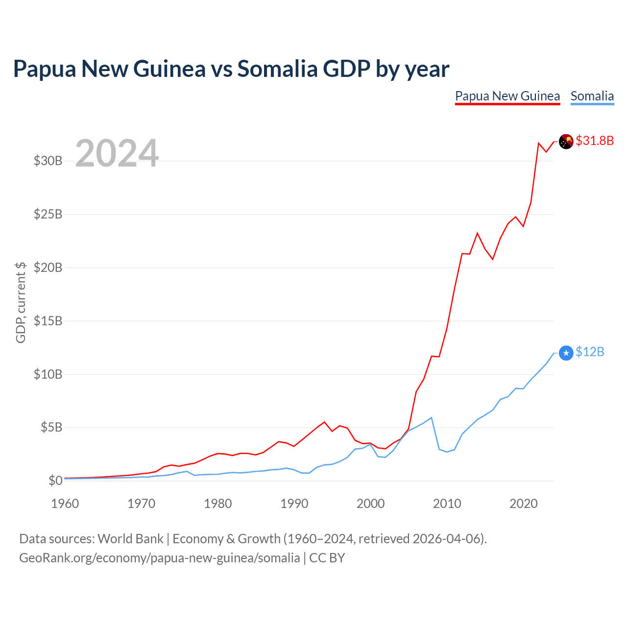 Papua New Guinea vs Somalia GDP by year