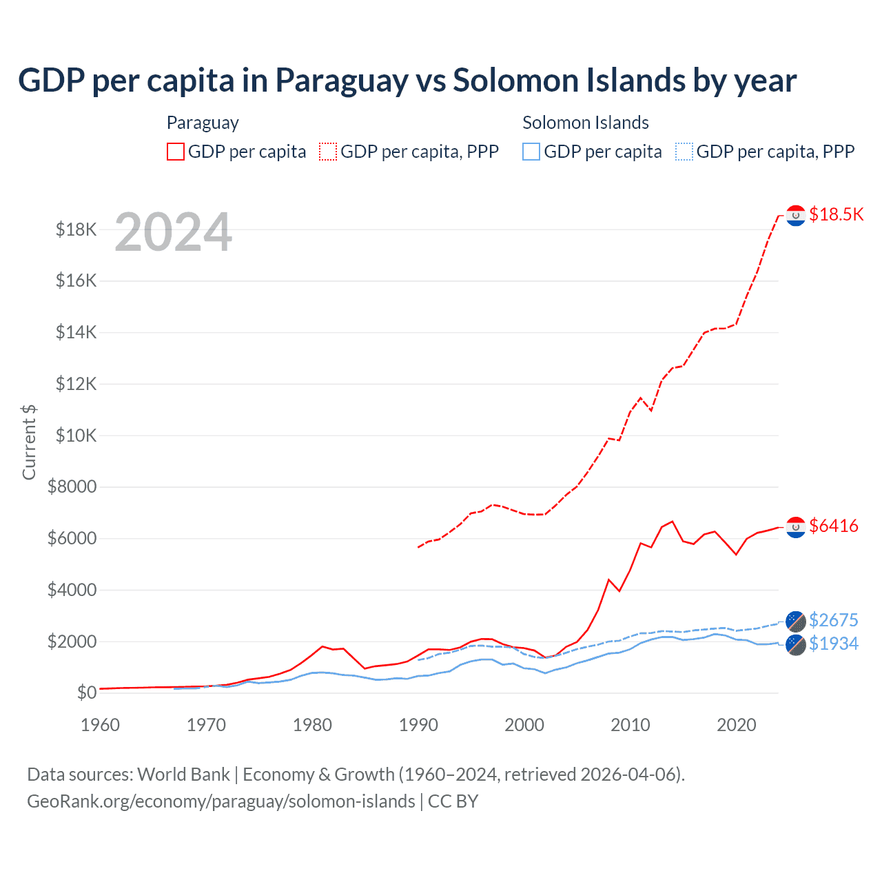 GDP per capita in Paraguay vs Solomon Islands by year