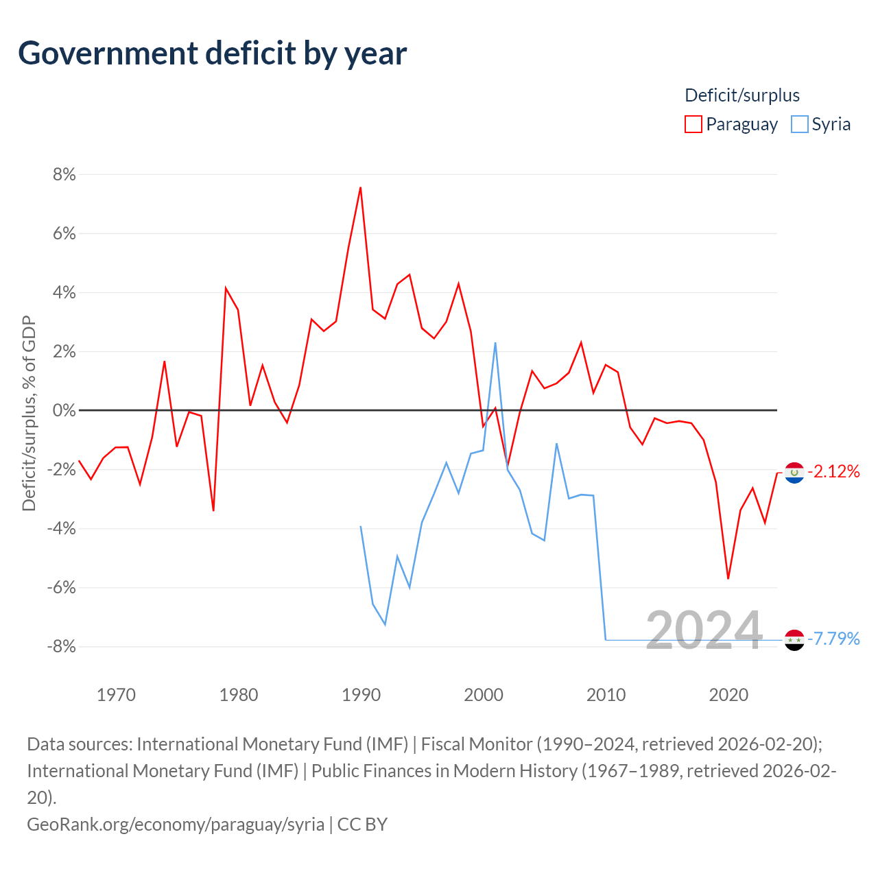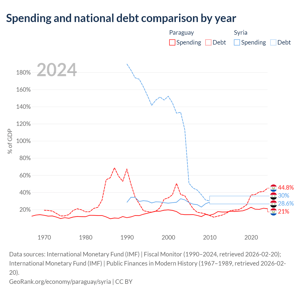 Paraguay has $19.9B in government debt (44.8% of GDP), compared to $18.4B (30% of GDP) in Syria.