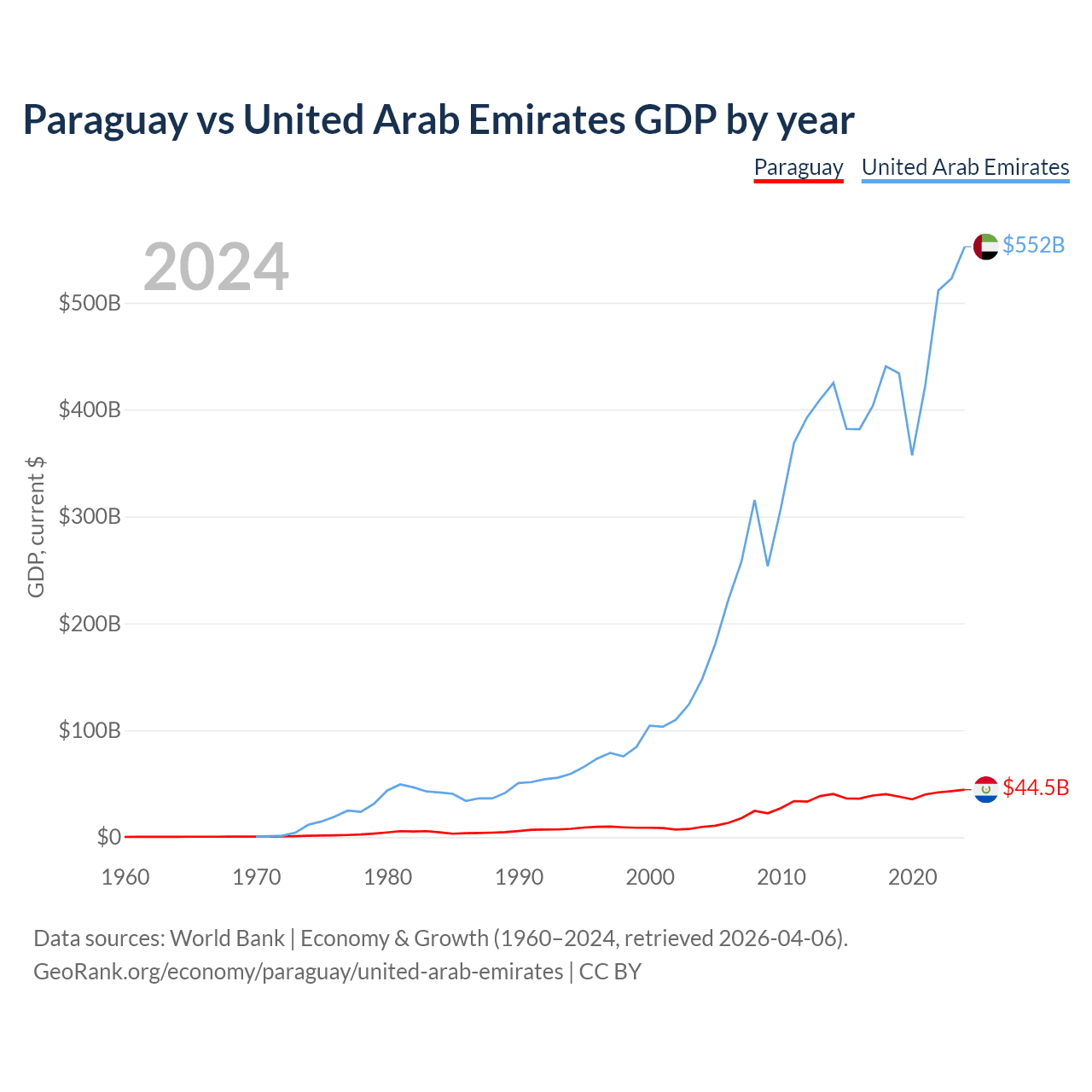 Paraguay vs United Arab Emirates GDP by year
