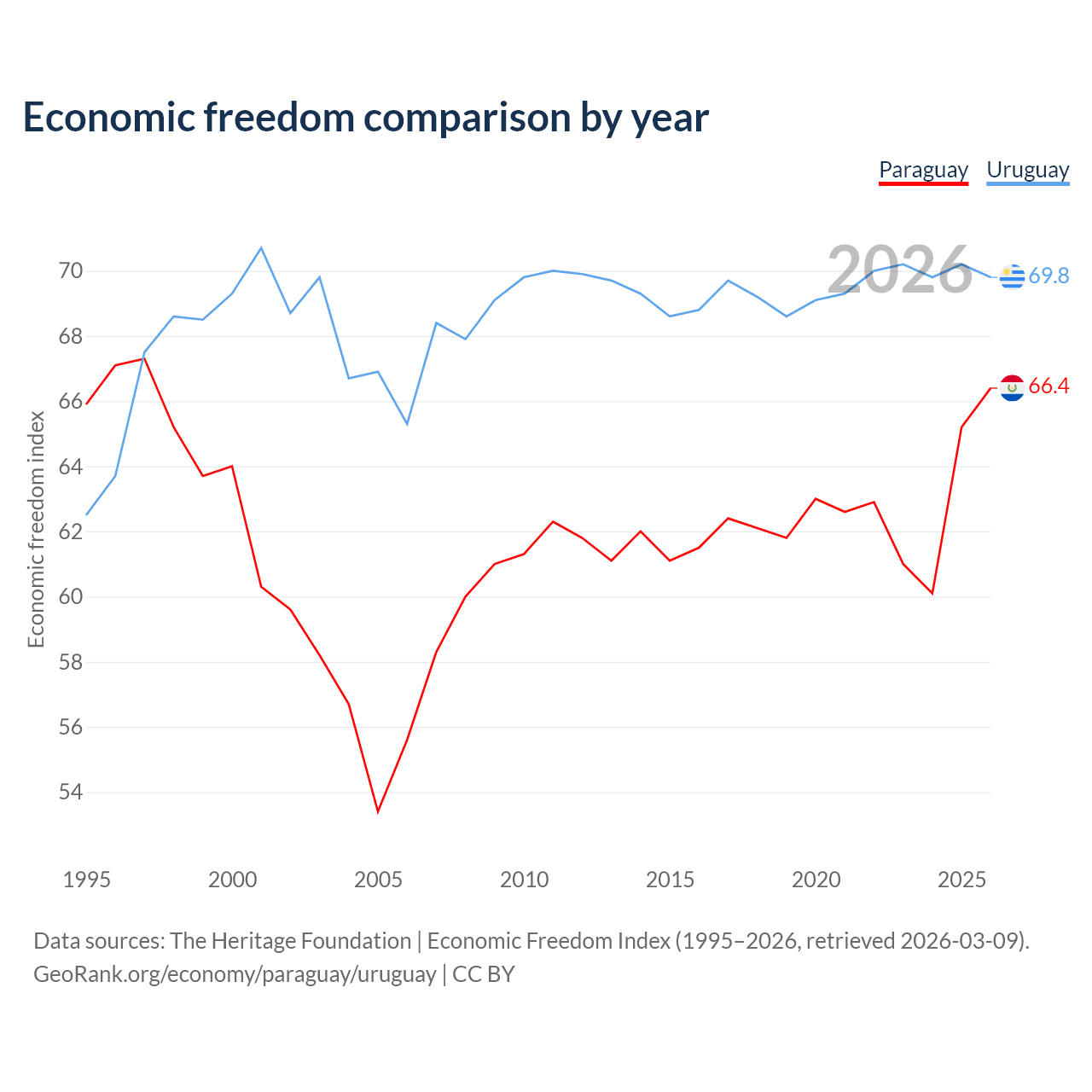 Data sources: The Heritage Foundation | Economic Freedom Index (1995–2026, retrieved 2026-03-09).