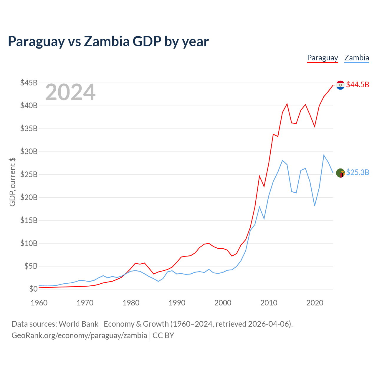 Paraguay vs Zambia GDP by year