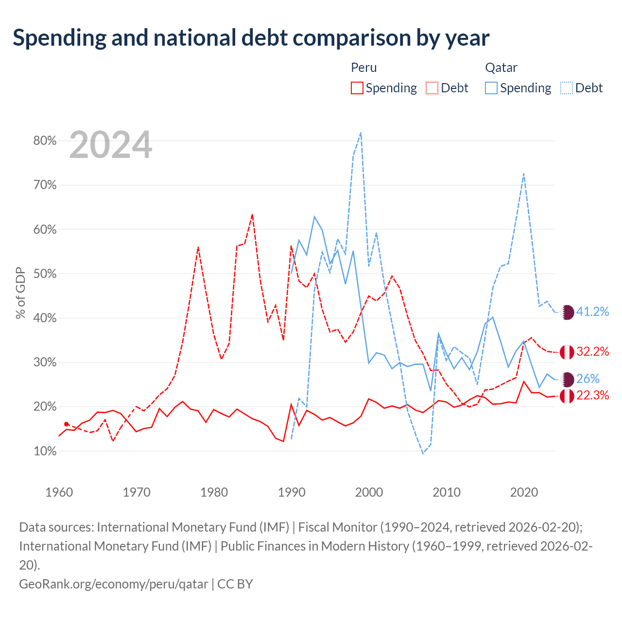 Peru has $93B in government debt (32.2% of GDP), compared to $90.2B (41.2% of GDP) in Qatar.