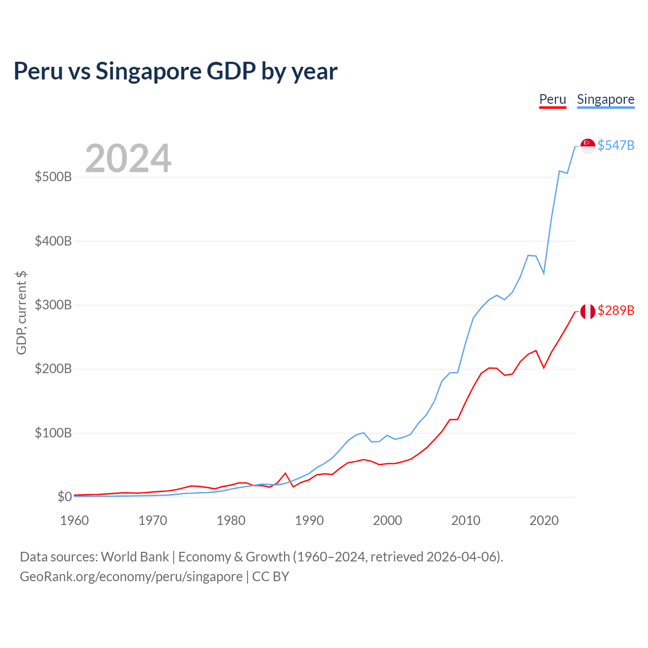 Peru vs Singapore GDP by year