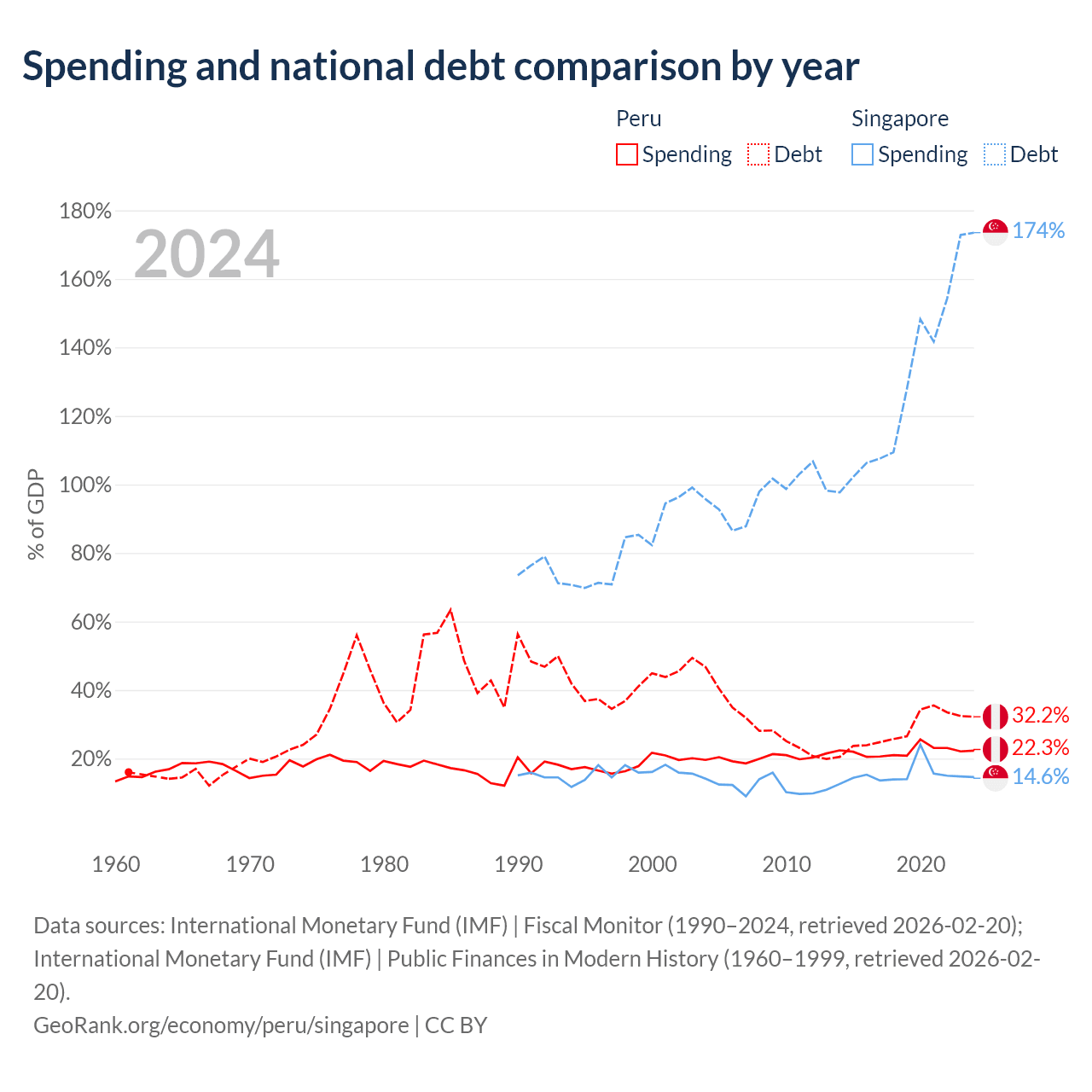 Peru has $93B in government debt (32.2% of GDP), compared to $950B (173.5% of GDP) in Singapore.