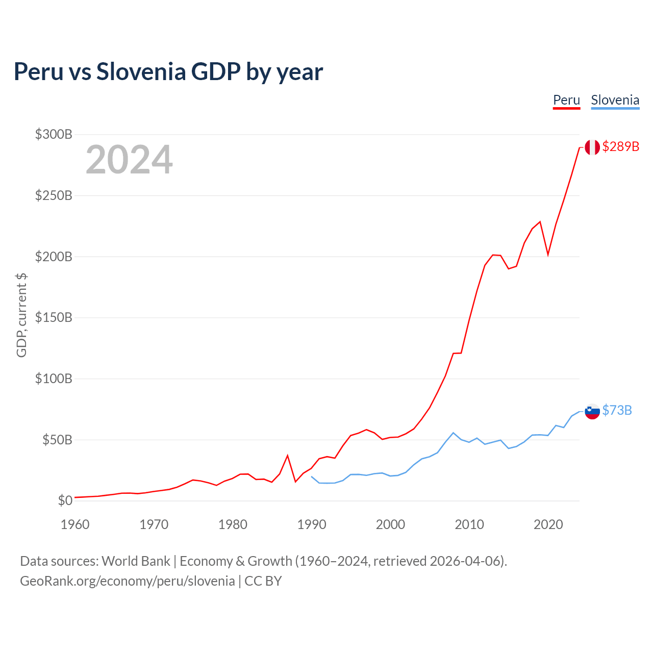 Peru vs Slovenia GDP by year