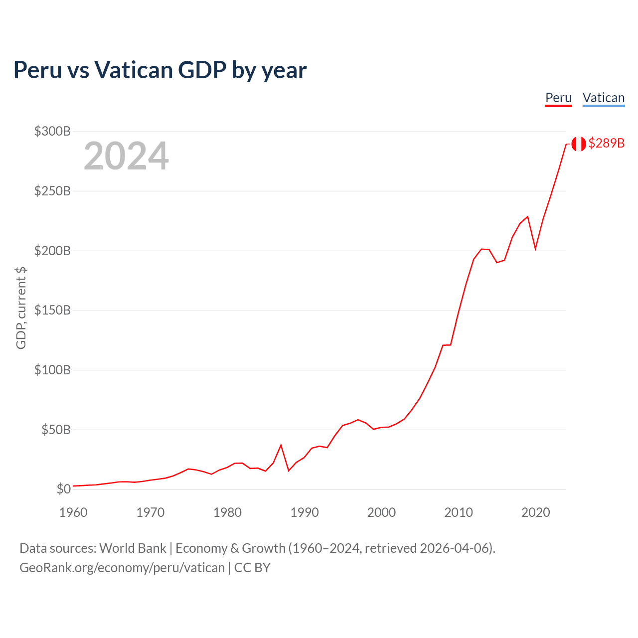 Peru vs Vatican GDP by year