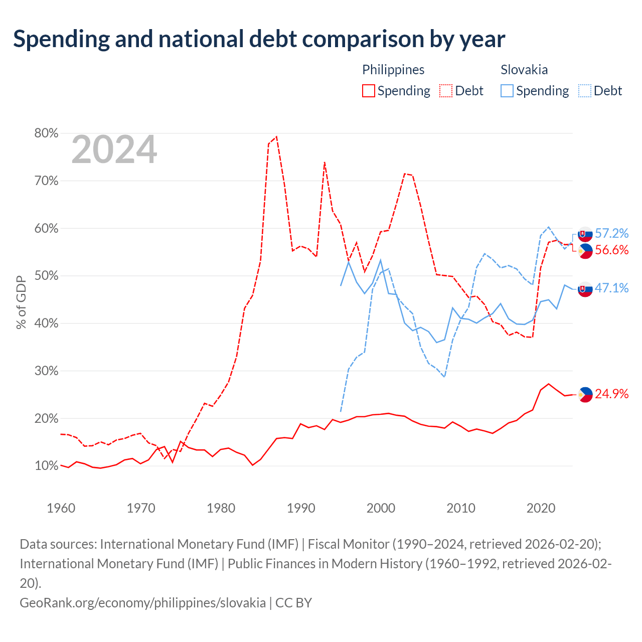 The Philippines has $261B in government debt (56.6% of GDP), compared to $80.7B (57.2% of GDP) in Slovakia.