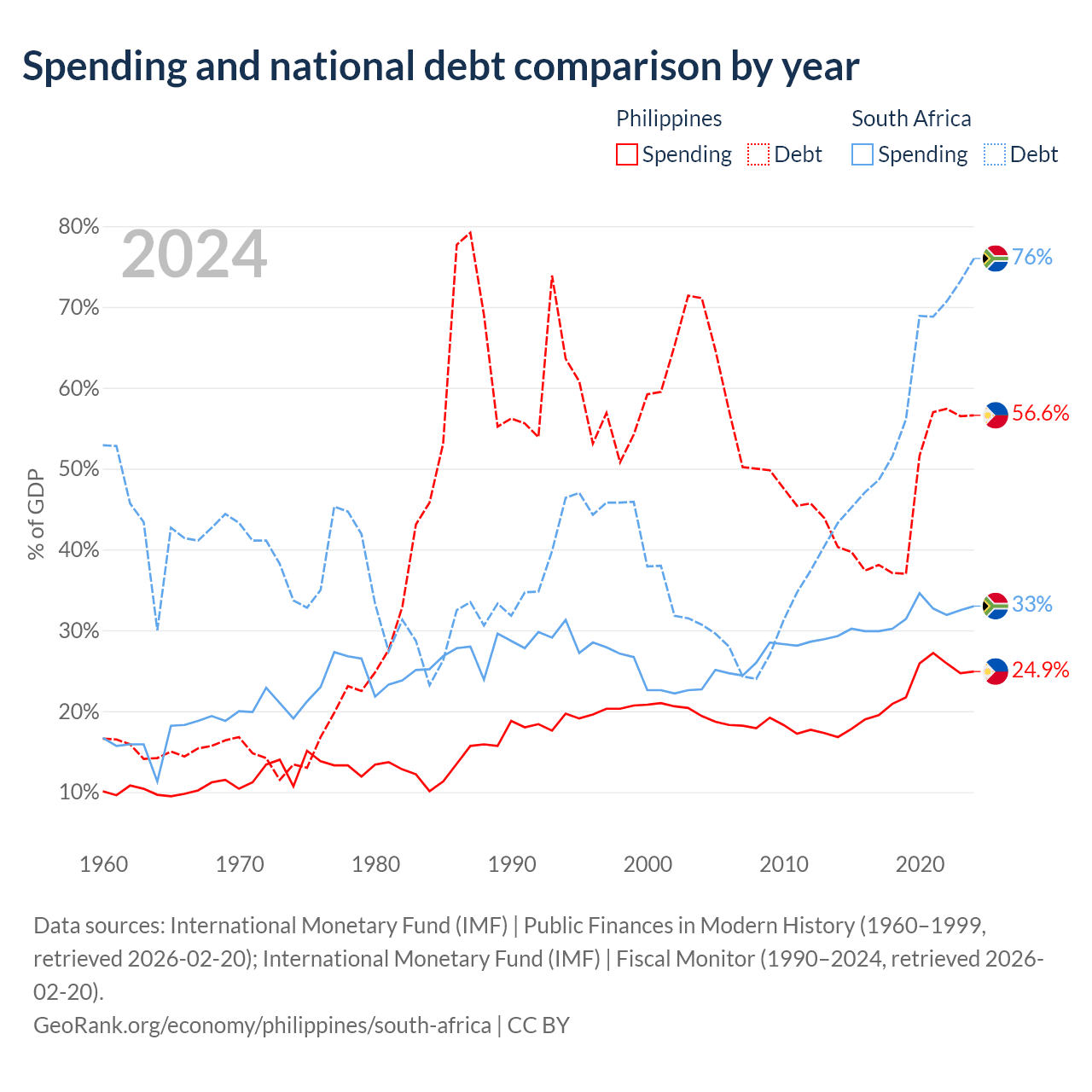 The Philippines has $261B in government debt (56.6% of GDP), compared to $305B (76% of GDP) in South Africa.