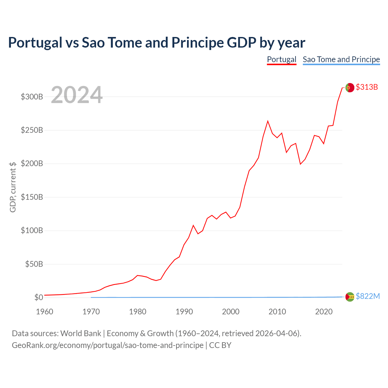 Portugal vs Sao Tome and Principe GDP by year