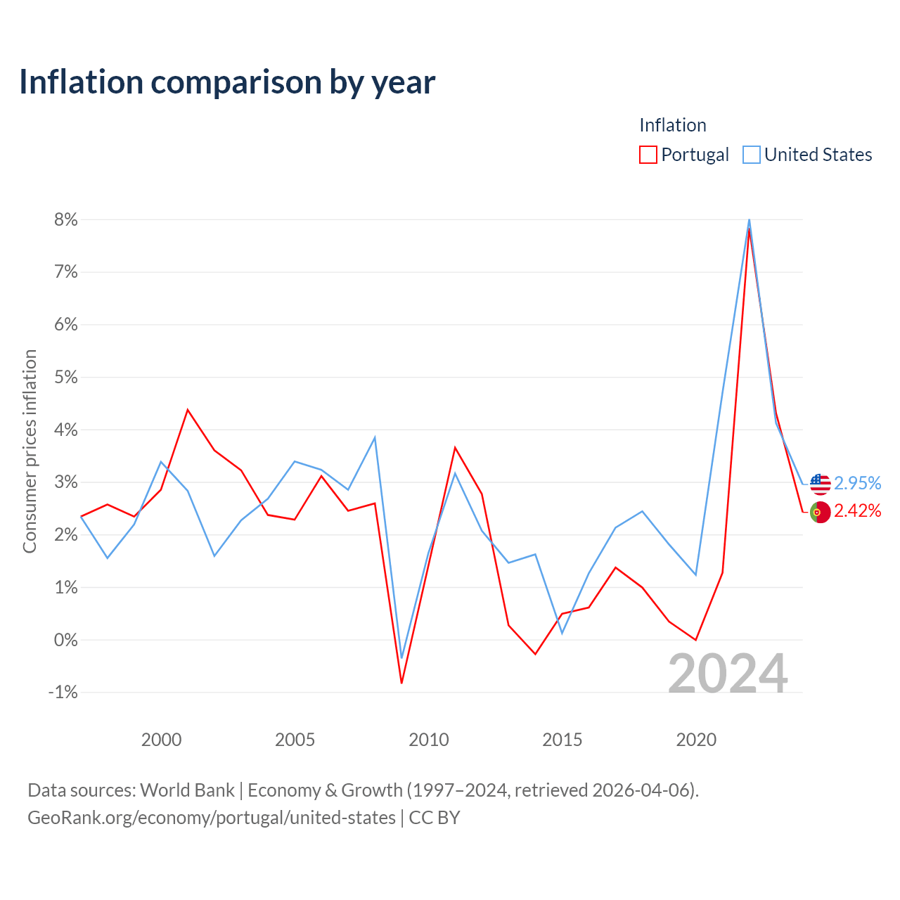 Data sources: World Bank | Economy & Growth (1960–2024, retrieved 2026-04-06).