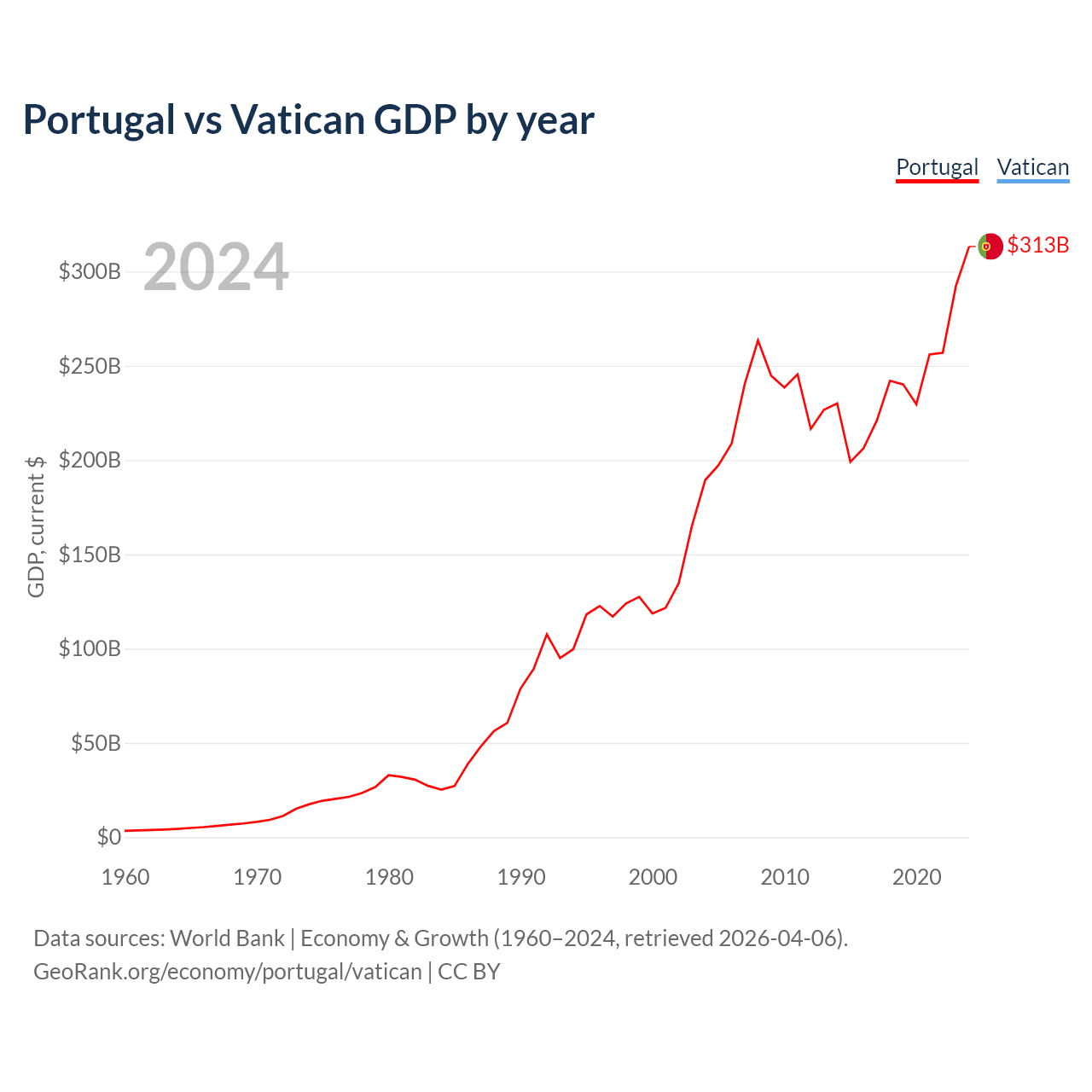 Portugal vs Vatican GDP by year