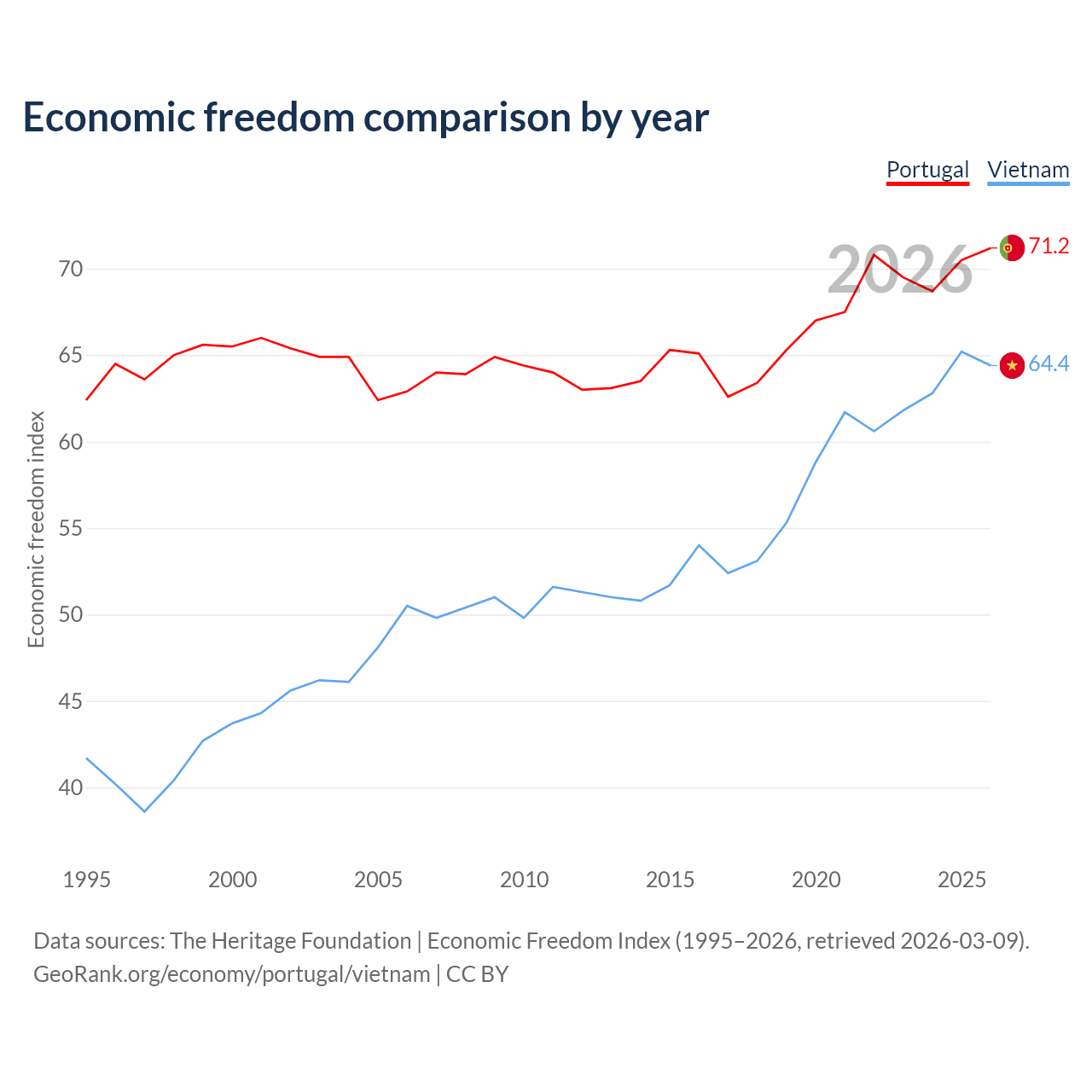 Data sources: The Heritage Foundation | Economic Freedom Index (1995–2026, retrieved 2026-03-09).