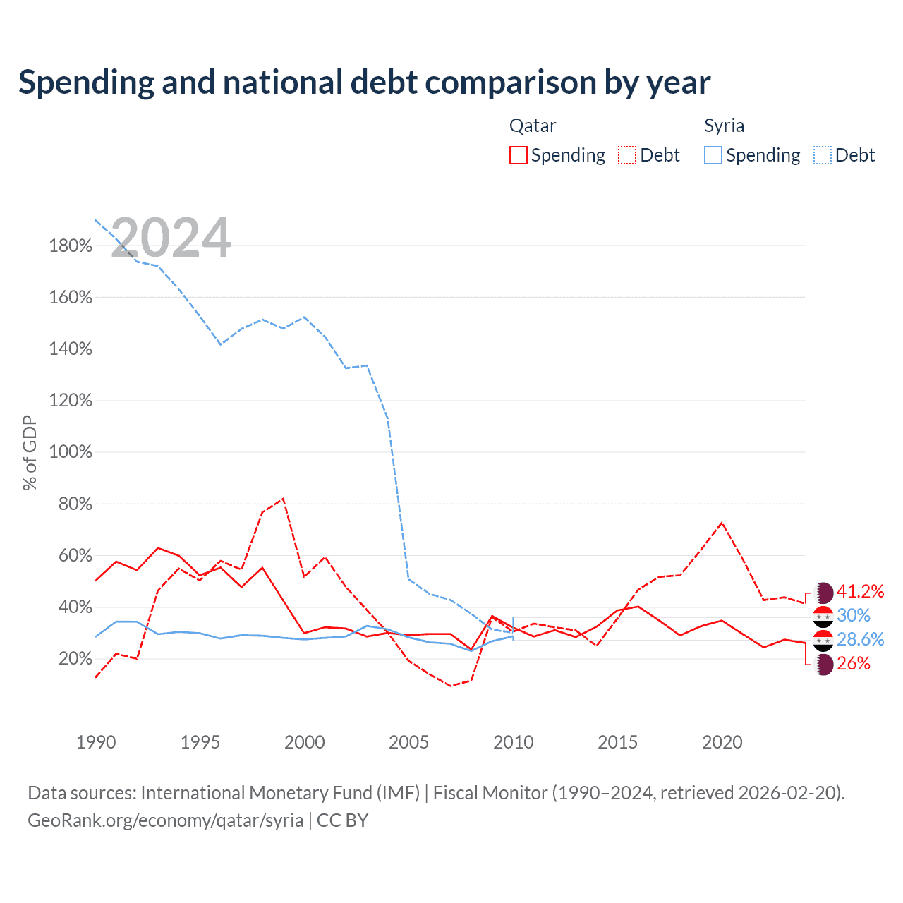 Qatar has $90.2B in government debt (41.2% of GDP), compared to $18.4B (30% of GDP) in Syria.