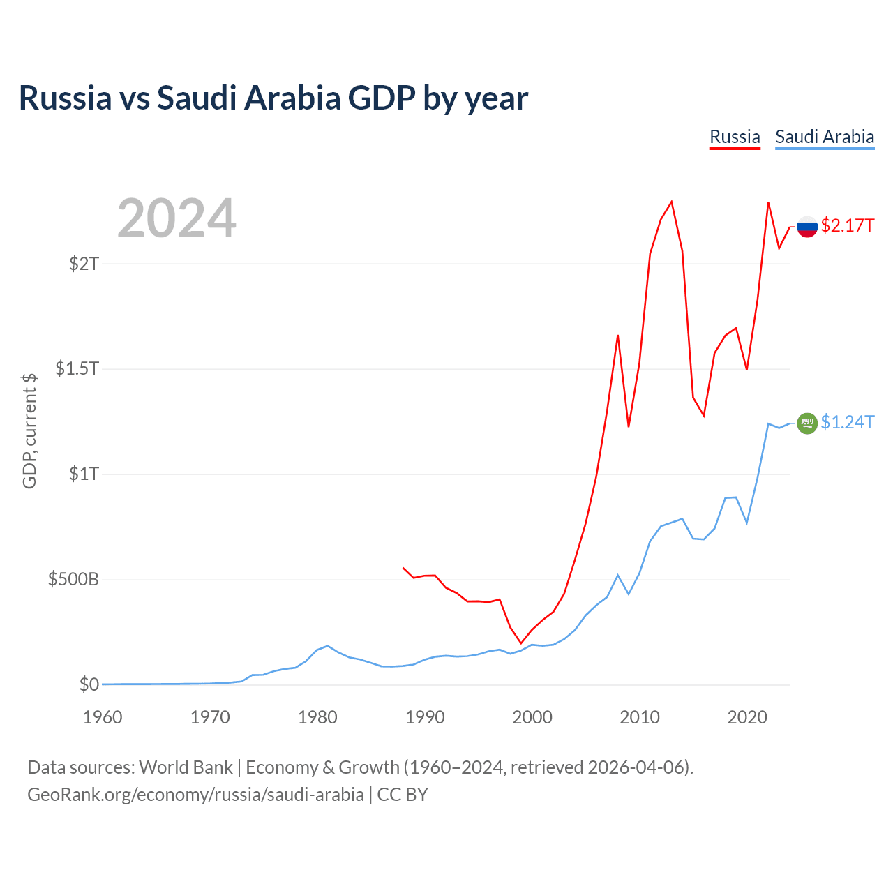 Russia vs Saudi Arabia GDP by year