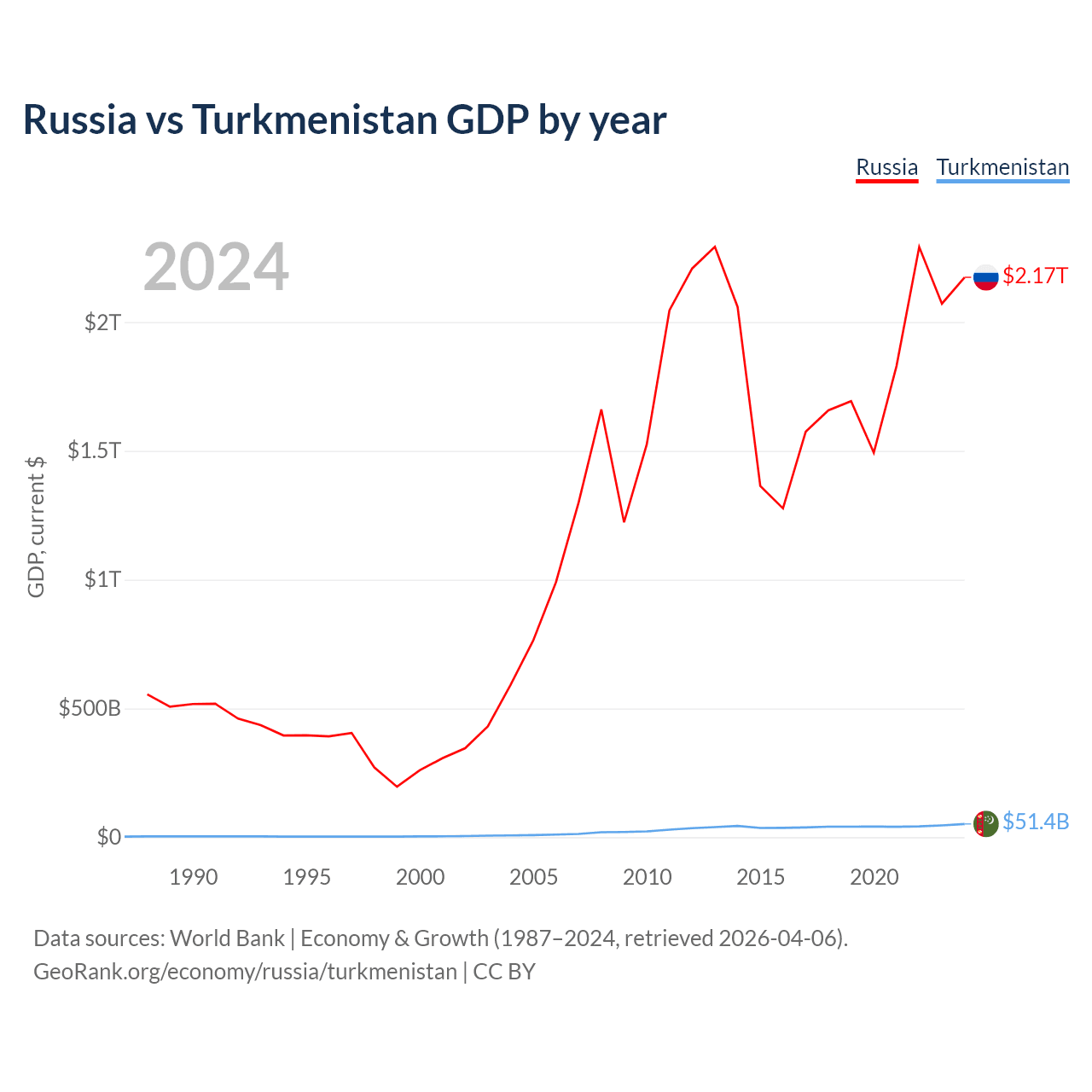 Russia vs Turkmenistan GDP by year