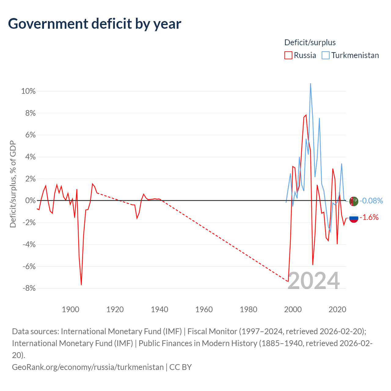 - International Monetary Fund (IMF) | Public Finances in Modern History (1885–1996, retrieved 2026-02-20)