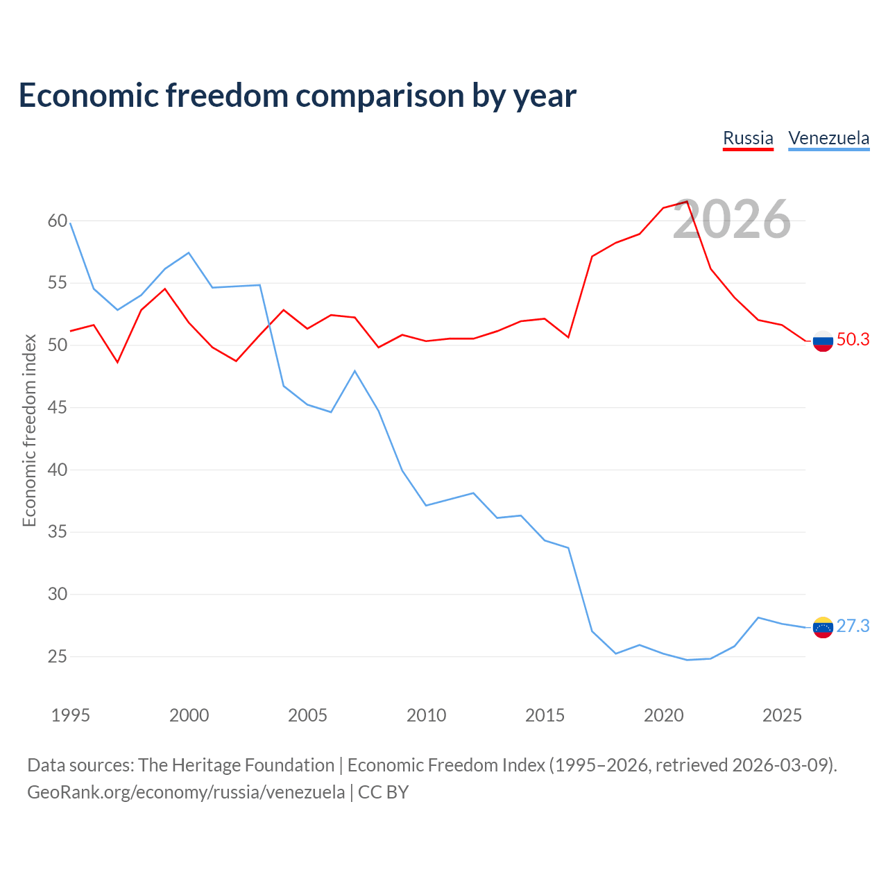 Data sources: The Heritage Foundation | Economic Freedom Index (1995–2026, retrieved 2026-03-09).