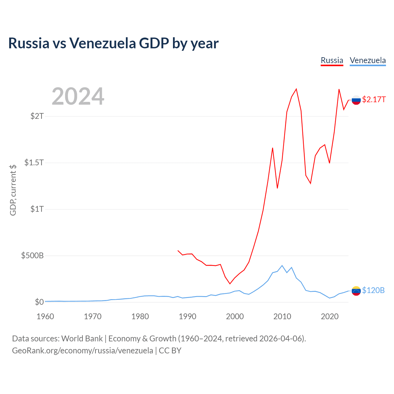 Russia vs Venezuela GDP by year
