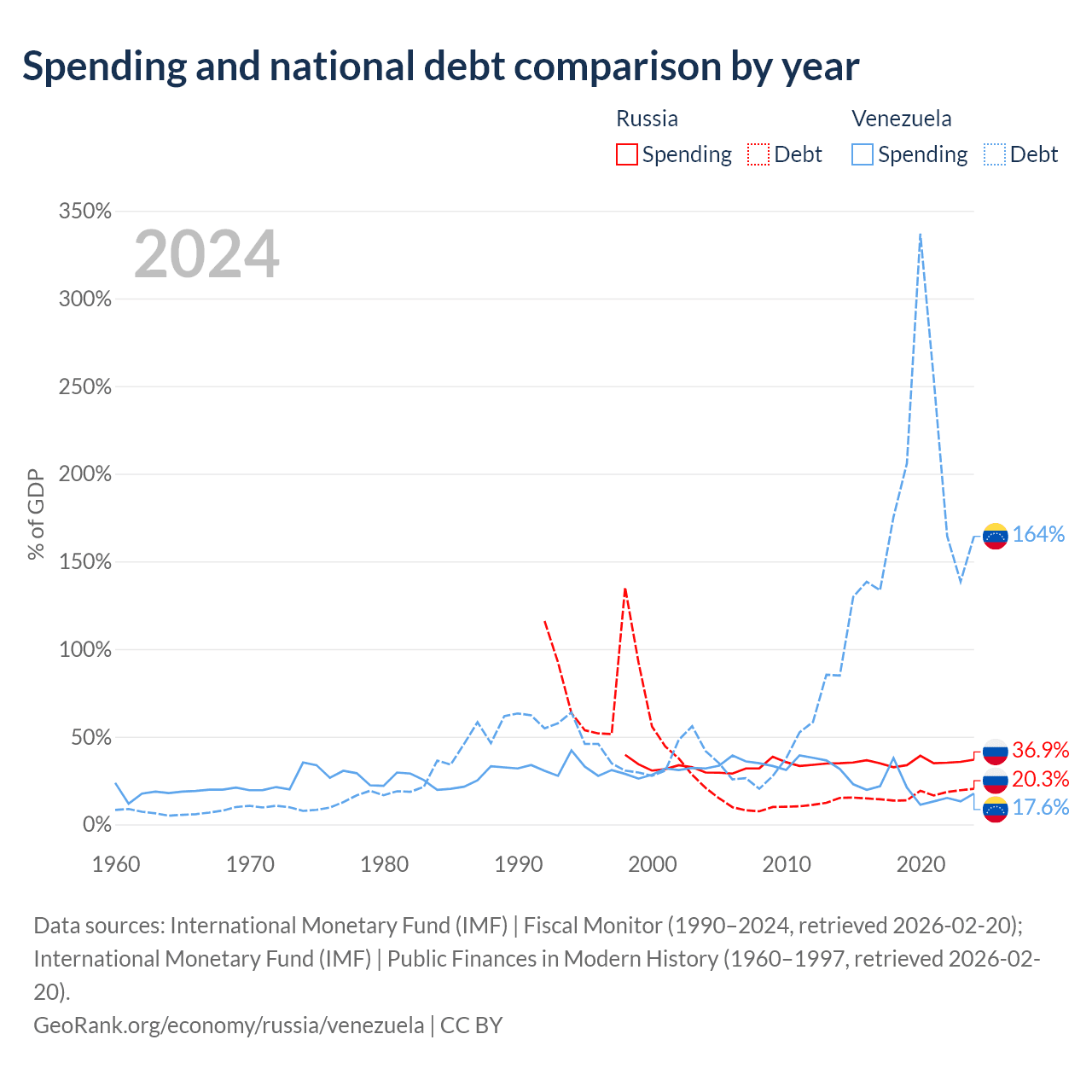 Russia has $440B in government debt (20.3% of GDP), compared to $197B (164.3% of GDP) in Venezuela.