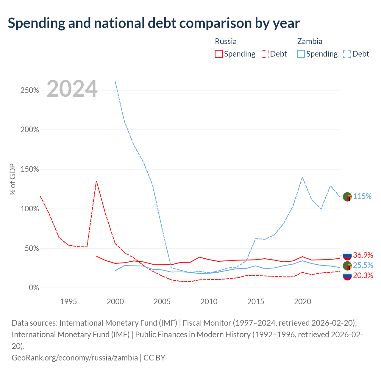 Russia has $440B in government debt (20.3% of GDP), compared to $29.1B (114.9% of GDP) in Zambia.