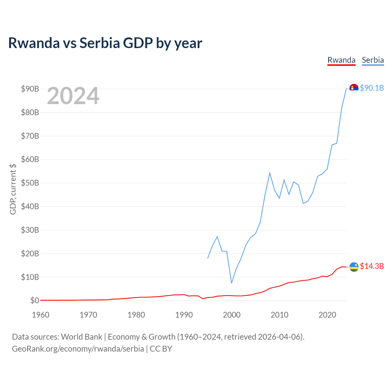 Rwanda vs Serbia GDP by year