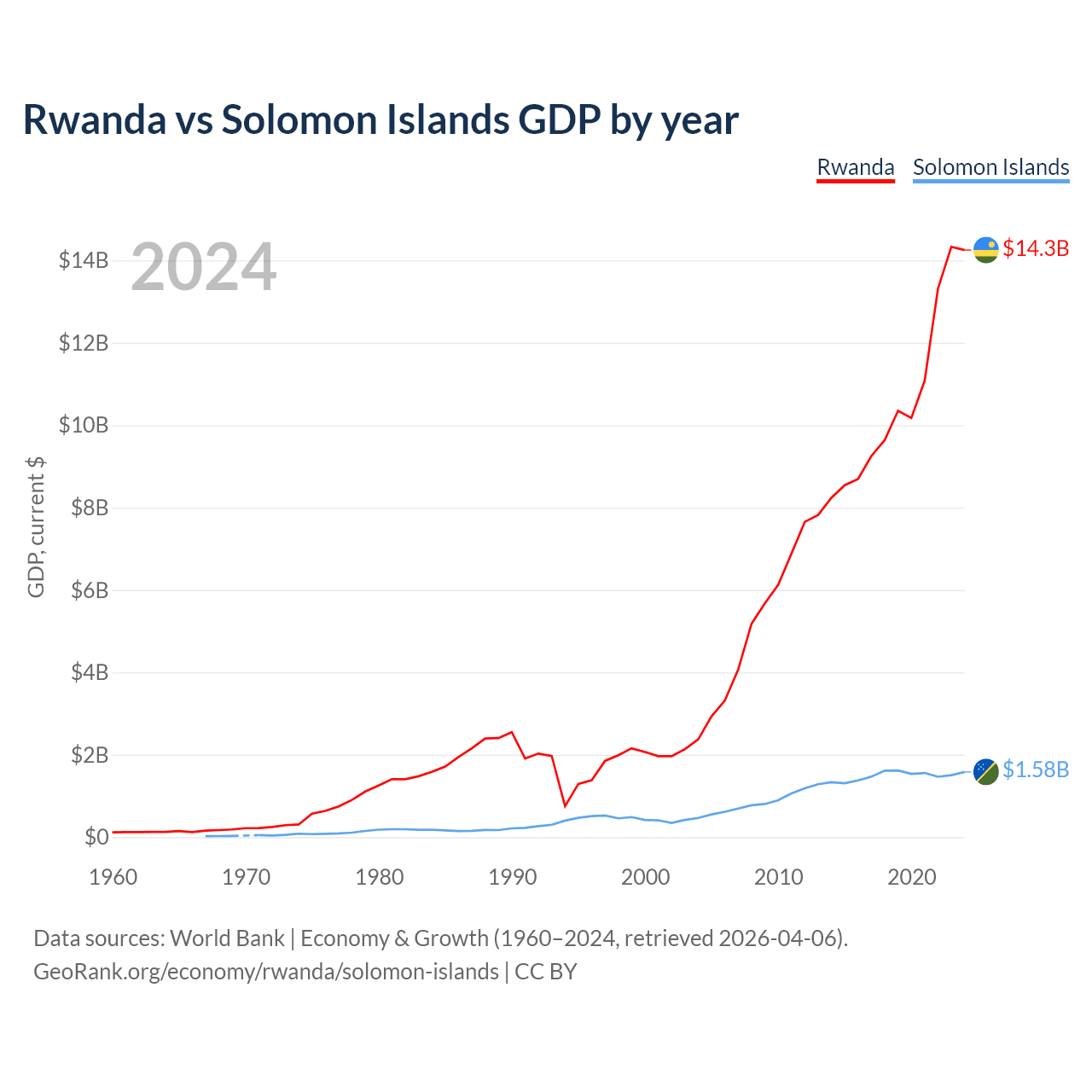 Rwanda vs Solomon Islands GDP by year