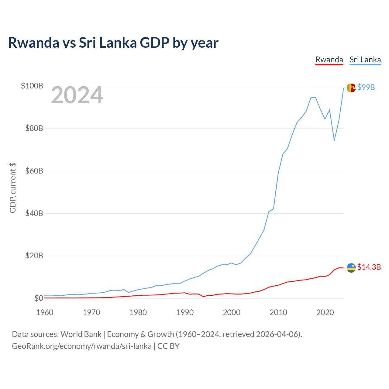 Rwanda vs Sri Lanka GDP by year