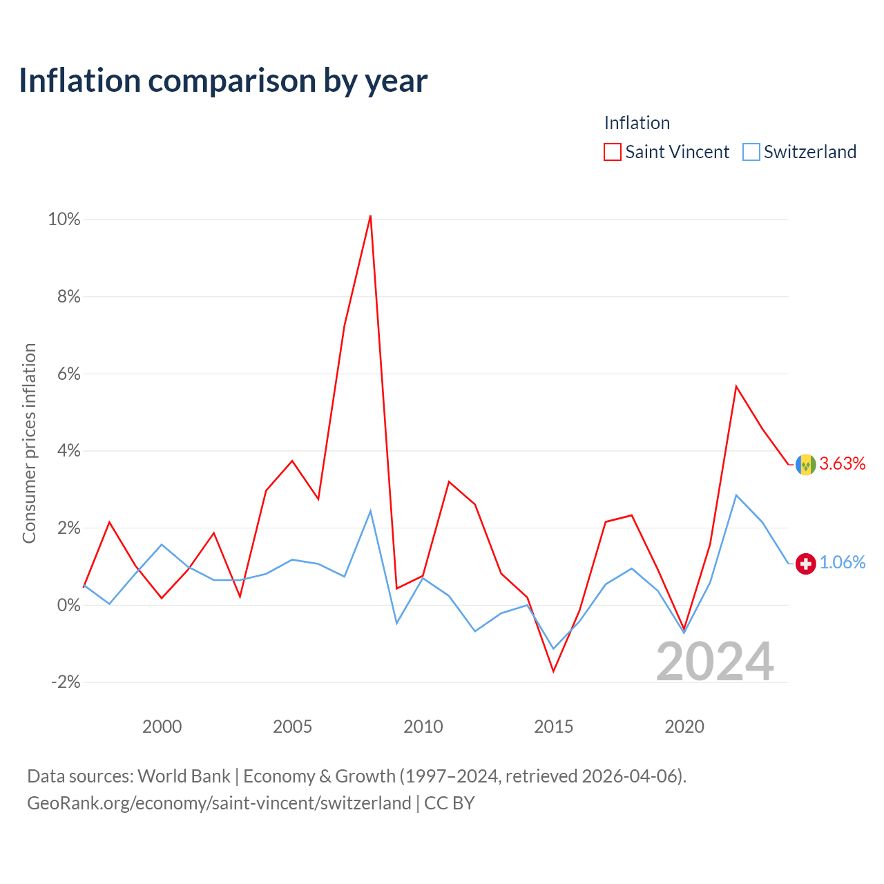 Saint Vincent vs Switzerland GDP by year