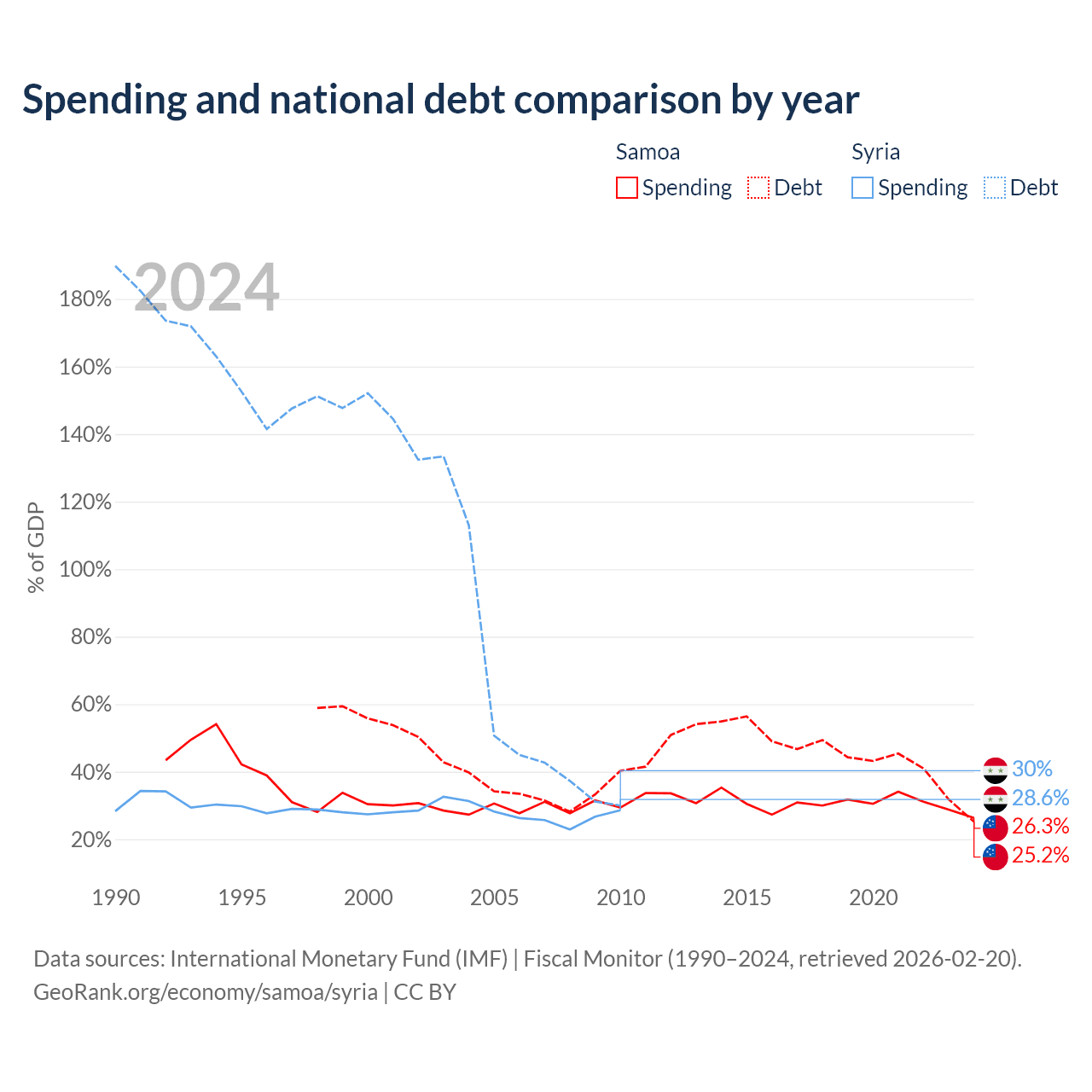 Samoa has $296M in government debt (25.2% of GDP), compared to $18.4B (30% of GDP) in Syria.