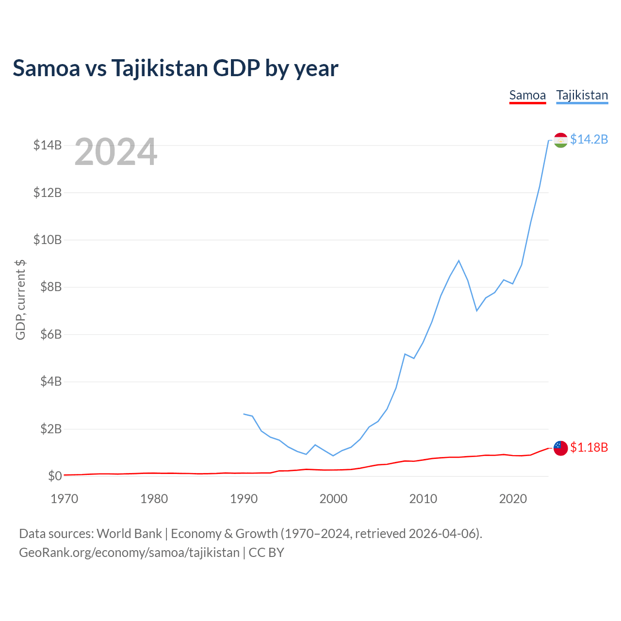 Samoa vs Tajikistan GDP by year