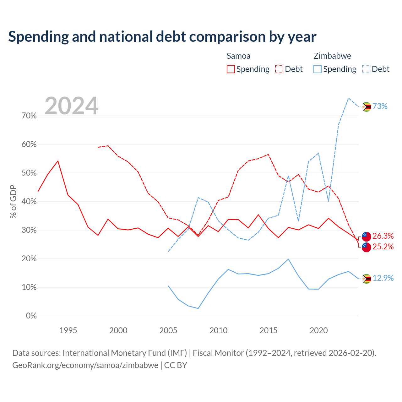 Samoa has $296M in government debt (25.2% of GDP), compared to $30.3B (73% of GDP) in Zimbabwe.